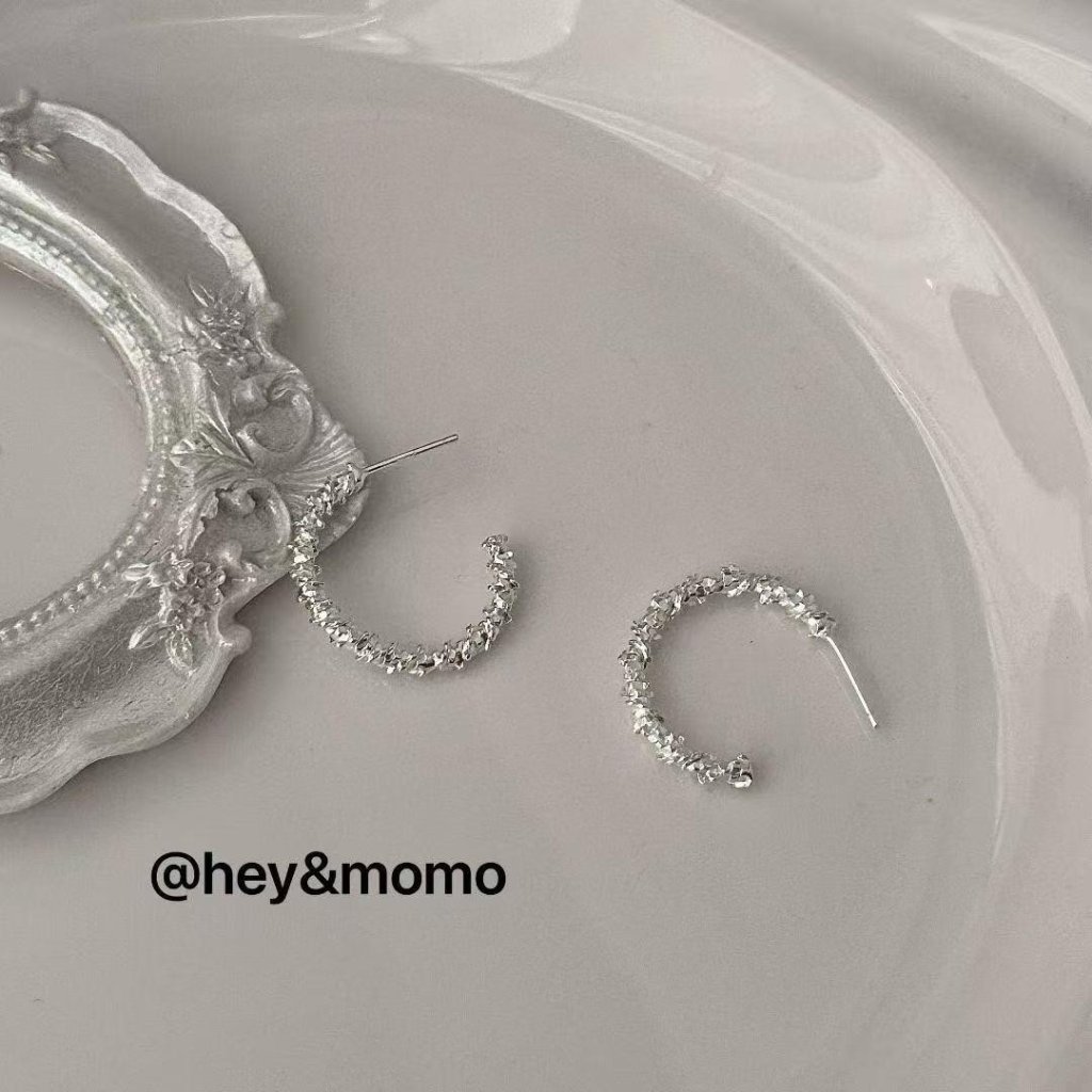 HM409 韓國 🇰🇷 925銀 實心碎銀造型紐結半包耳耳釘 $179