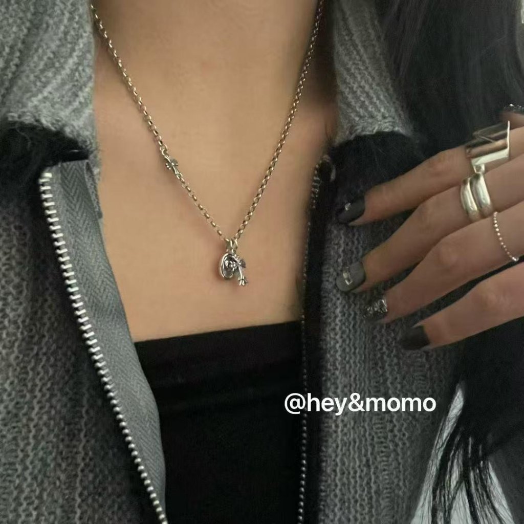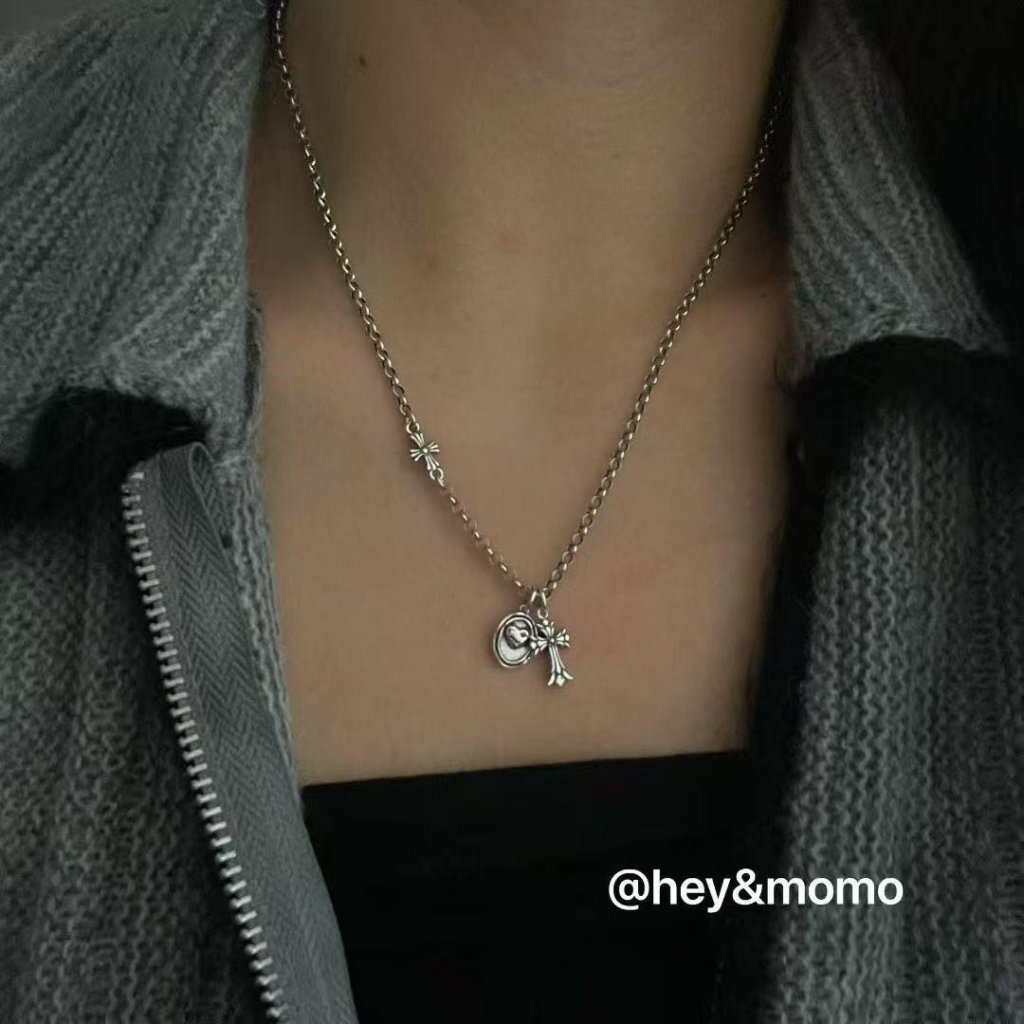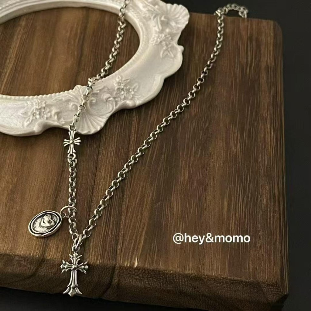 HM417 韓國 🇰🇷 925銀 愛心圖騰銀牌➕克羅心十字架重工頸鏈 $399