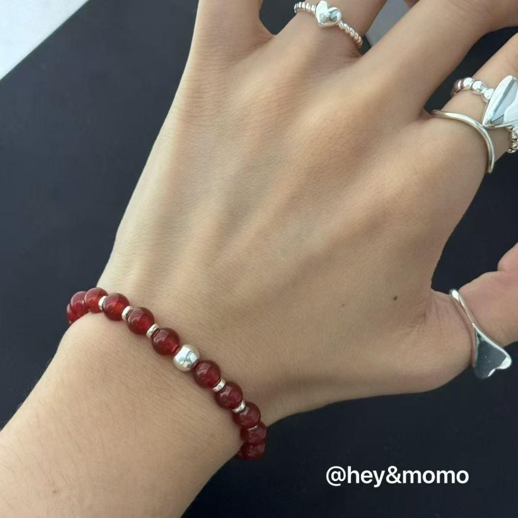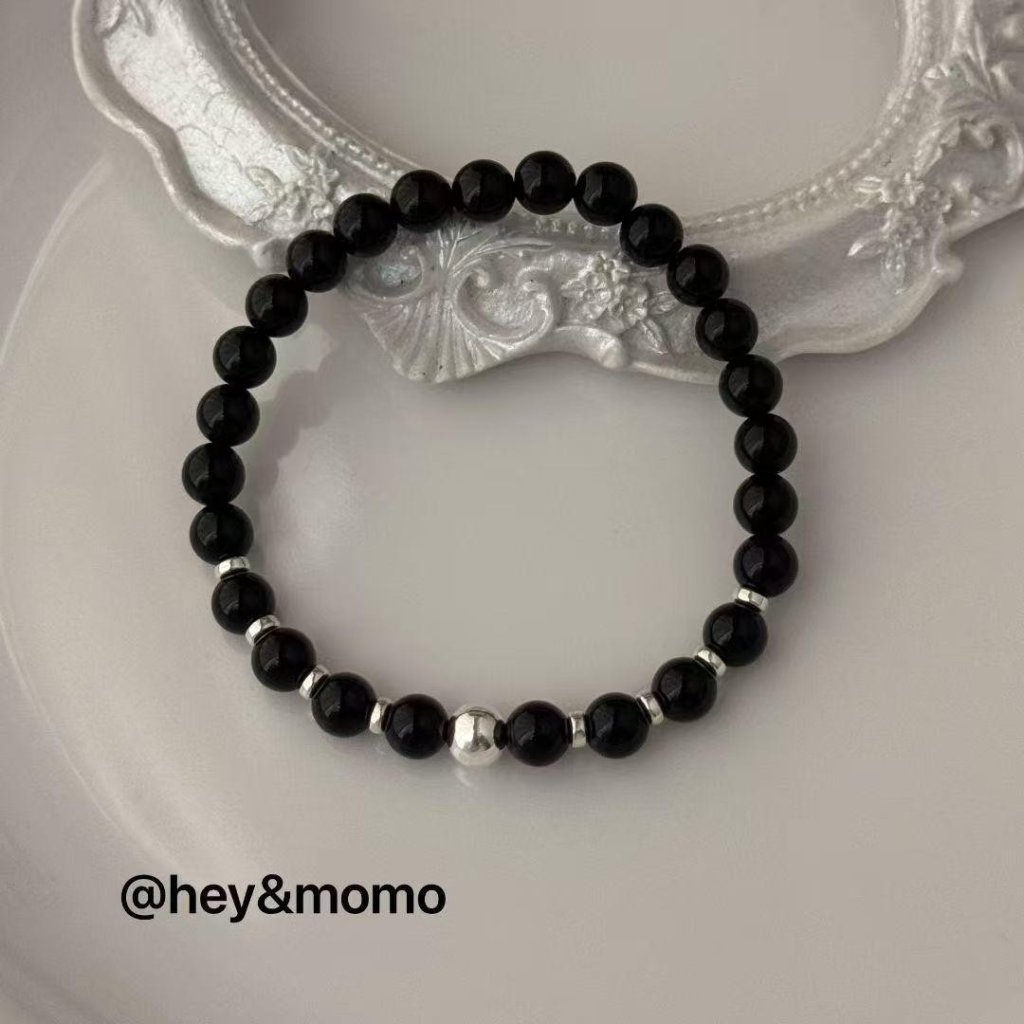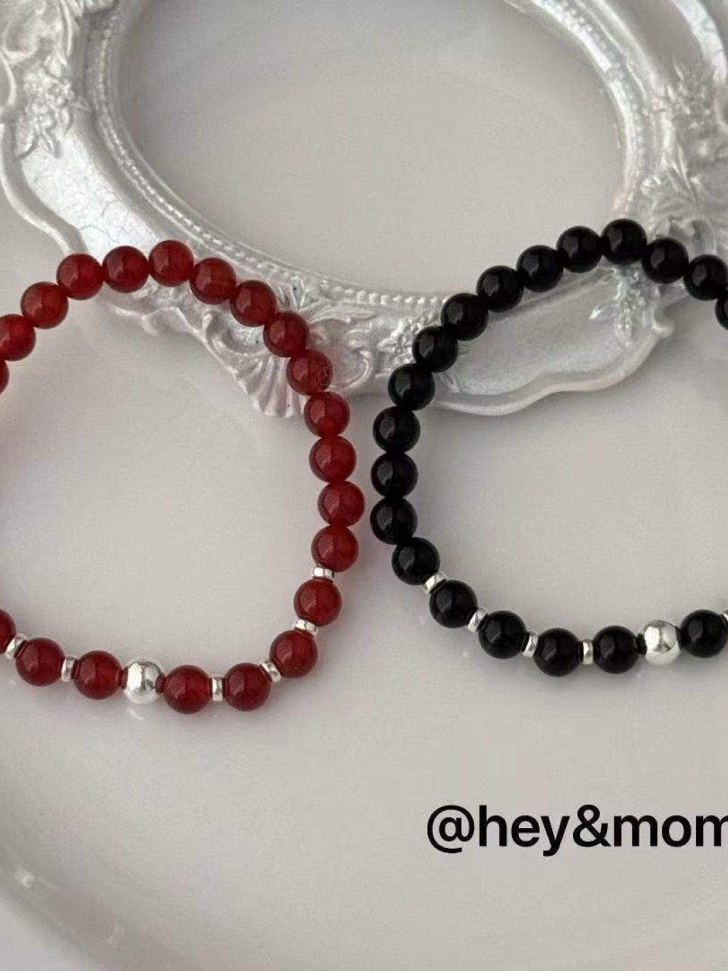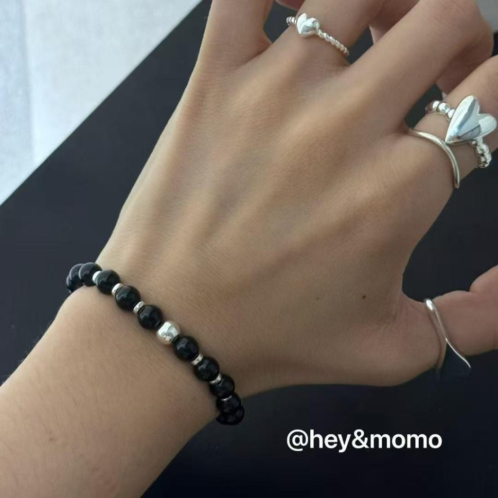 主頁 HM421 韓國 🇰🇷 925銀 瑪瑙銀球彈力繩手鏈(獨家款)$139 黑、紅