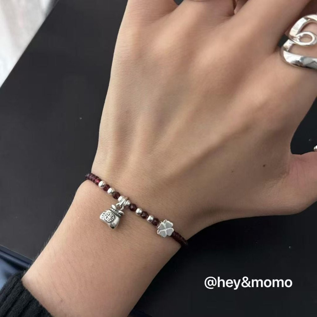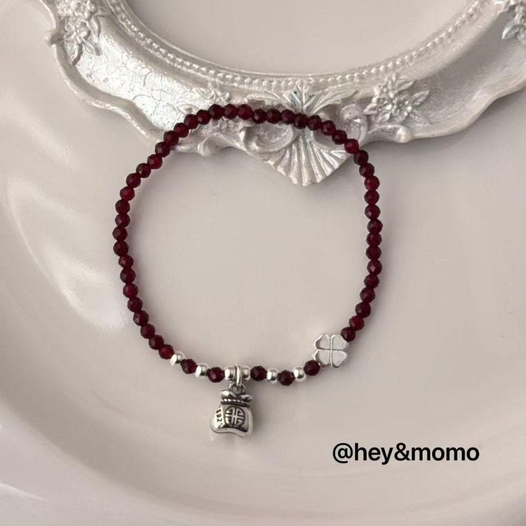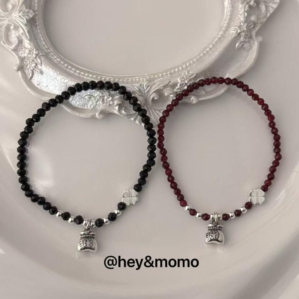 主頁 HM424 韓國 🇰🇷 925銀四葉草錢袋彈力繩手鍊 ✨獨家款✨$139 尖晶石 $139 石榴石 $139