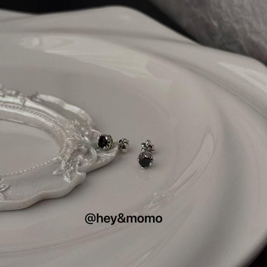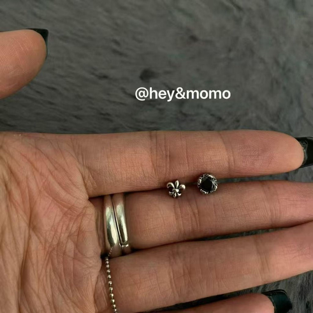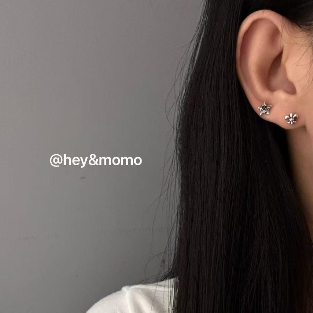 HM430 韓國 🇰🇷 925銀 黑曜石➕克羅心鳶尾花 正反兩戴耳骨釘 $149