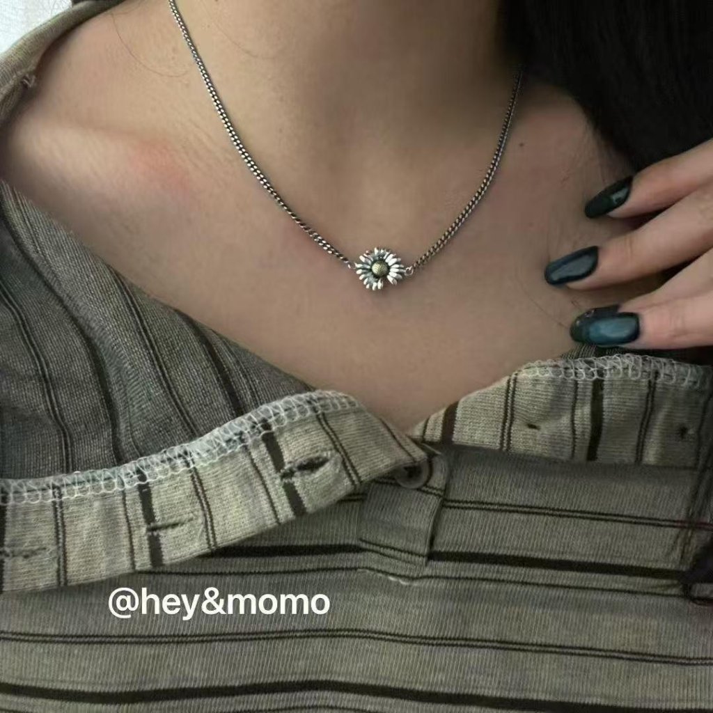 HM433 韓國 🇰🇷 925銀 做舊坦克鏈➕小雛菊 個性項鍊$319