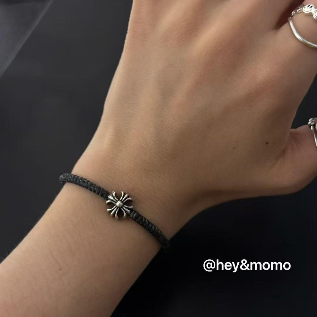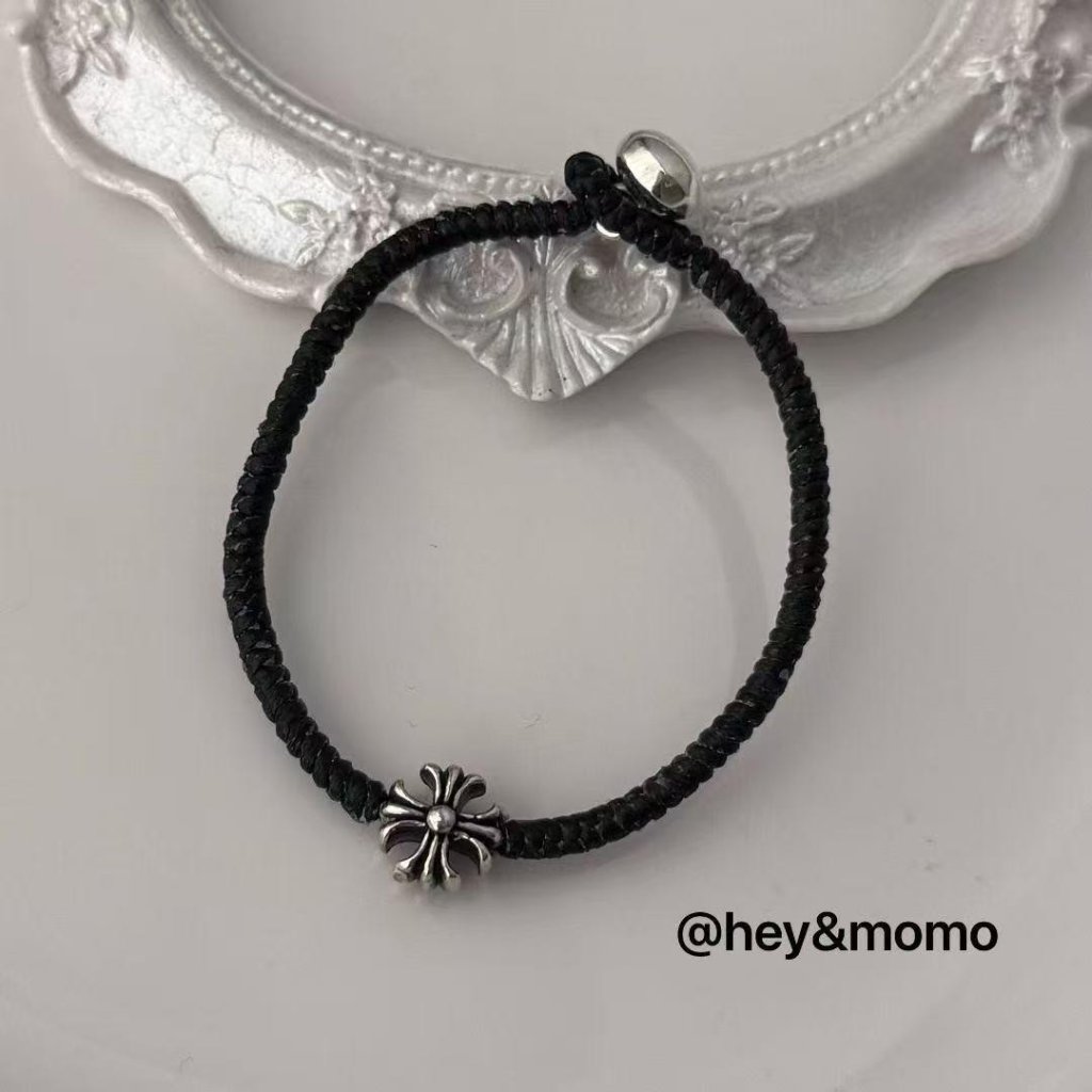 HM439 韓國 🇰🇷 925銀 克羅心十字架黑色蜜蠟繩手鍊 小號 $199 大號 $219