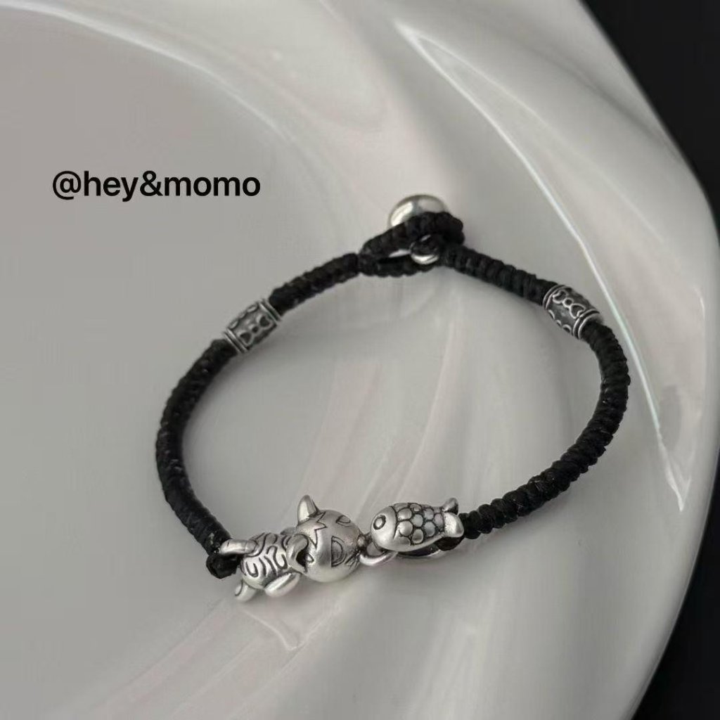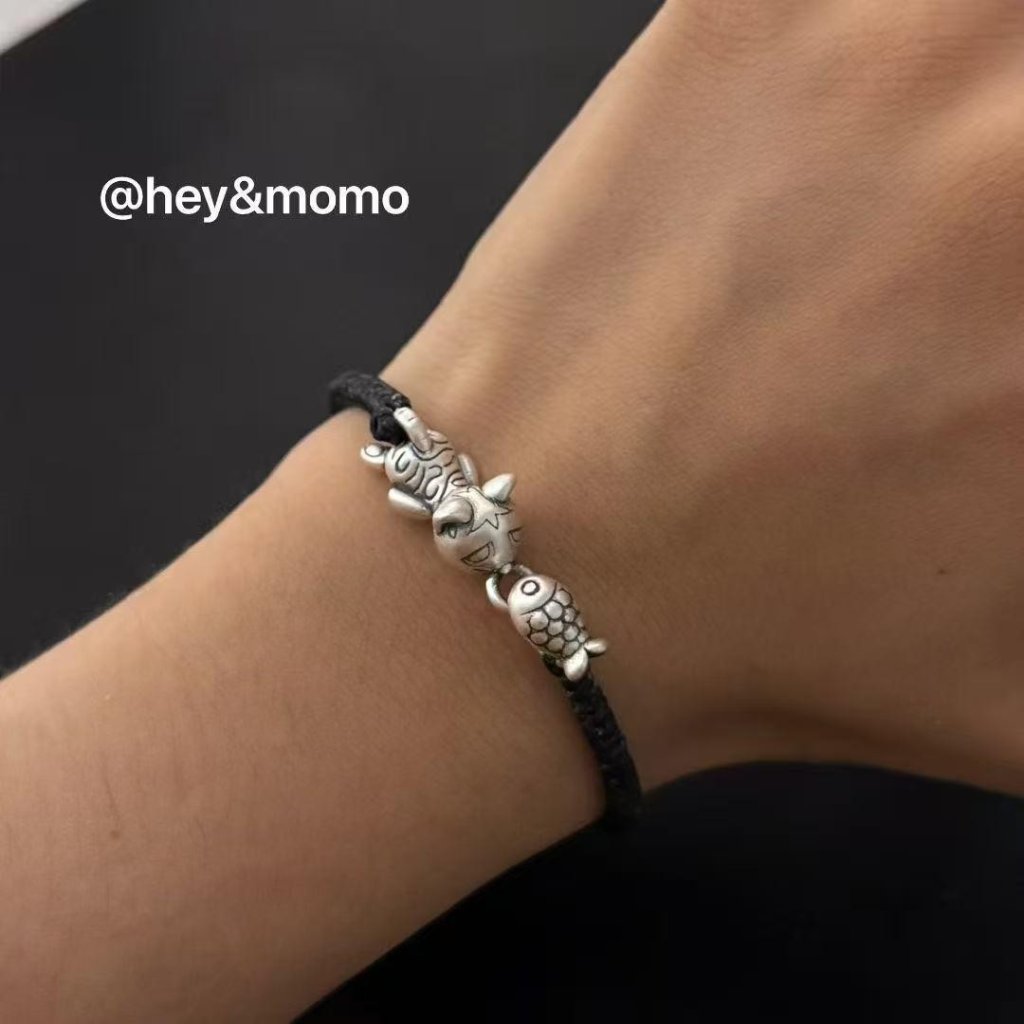主頁 HM441 韓國 🇰🇷 925銀 Q版招財貓➕小銀魚 復古轉運桶 蜜蠟繩手鍊 小號 $269 大號 $279