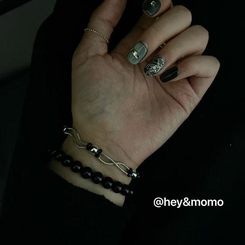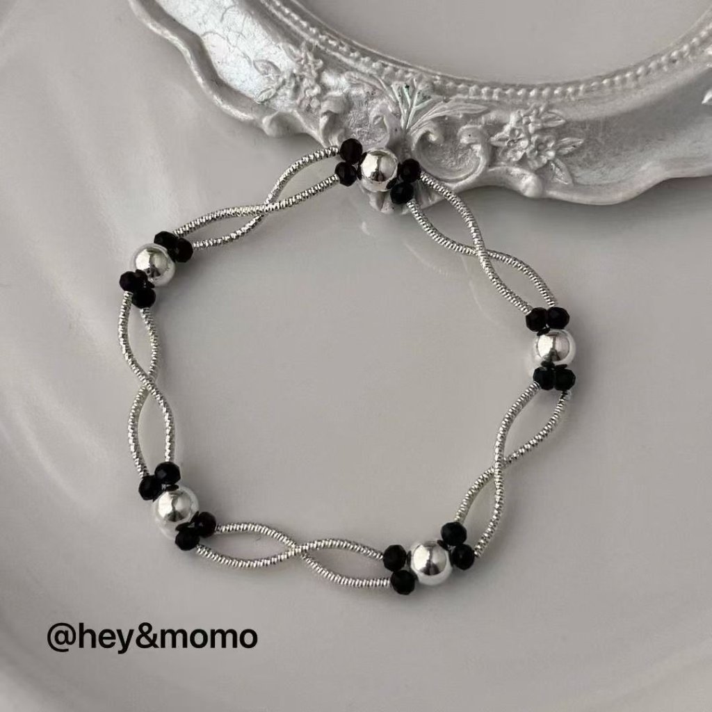 主頁 HM465 韓國 🇰🇷 925銀 個性黑水晶銀球彈力繩手鏈 $219