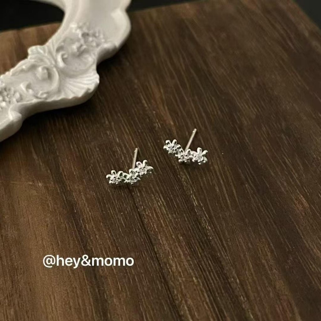HM479 韓國 🇰🇷 925銀 簡約亮白銀三朵小花耳釘 $119