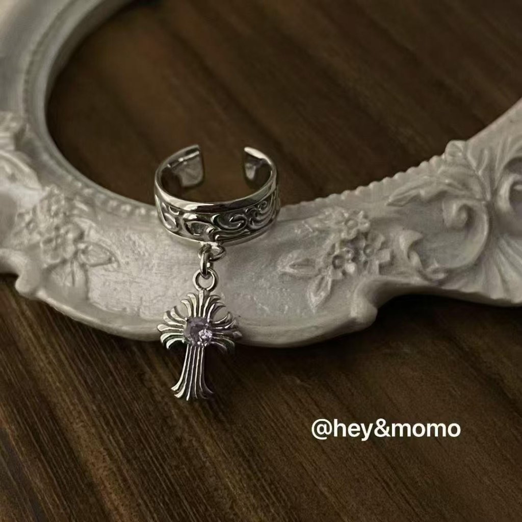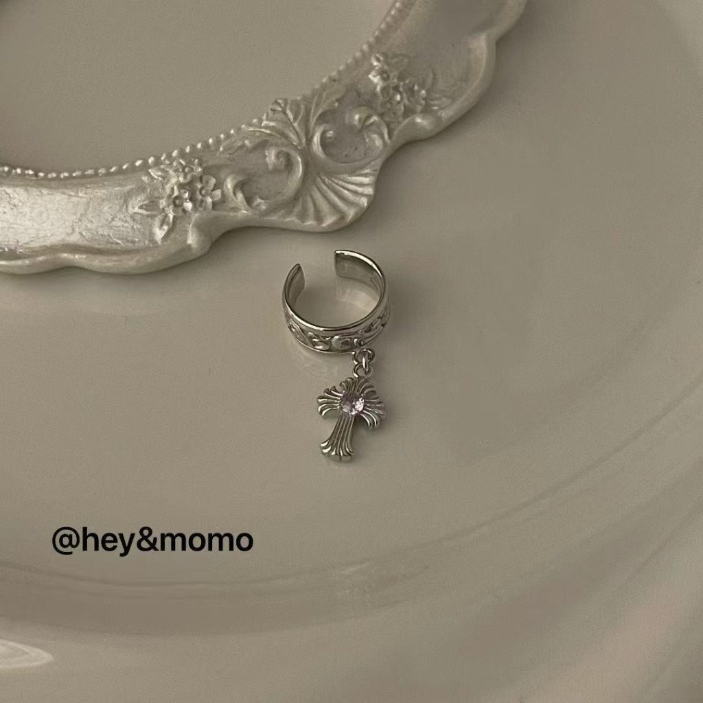 HM487 韓國 🇰🇷 925銀 紫鑽克羅心十字架吊墜 個性圖騰耳骨夾 $159