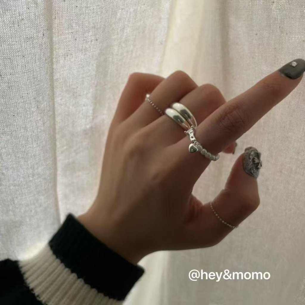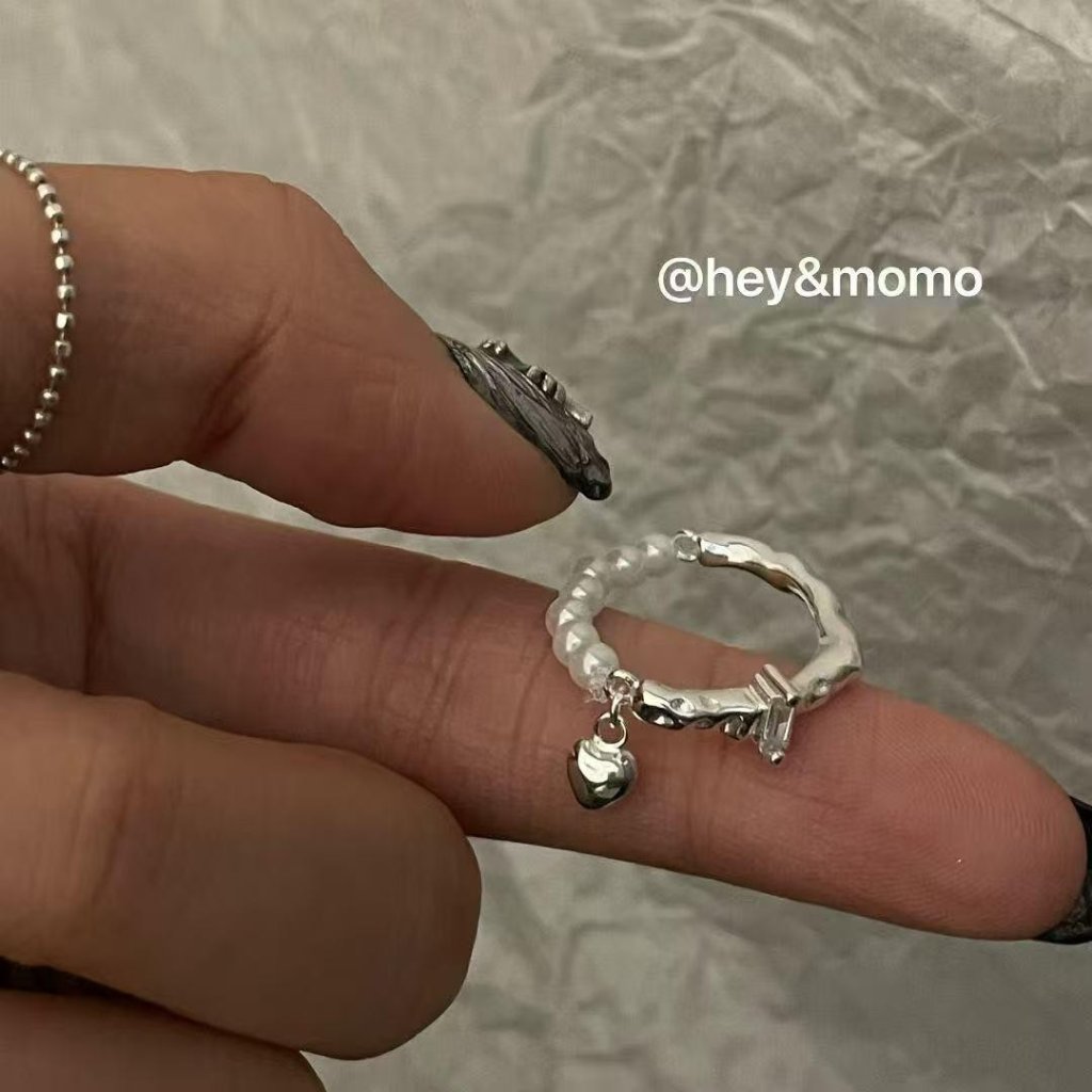 主頁 HM491 韓國 🇰🇷 925銀 珍珠➕銀塊拼接 愛心吊墜 戒指 $139
