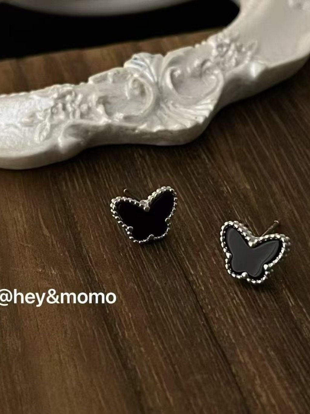 主頁 HM494 韓國 🇰🇷 925銀蝴蝶造型耳釘 $99 黑=黑釉 白=貝母