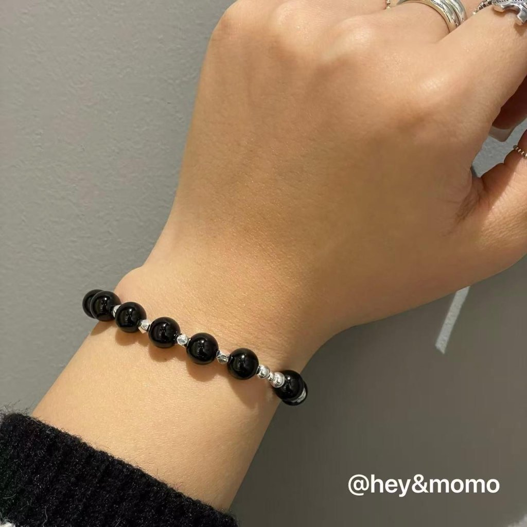 主頁 HM499 韓國 🇰🇷 925銀 碎銀黑瑪瑙招財手鍊 $249