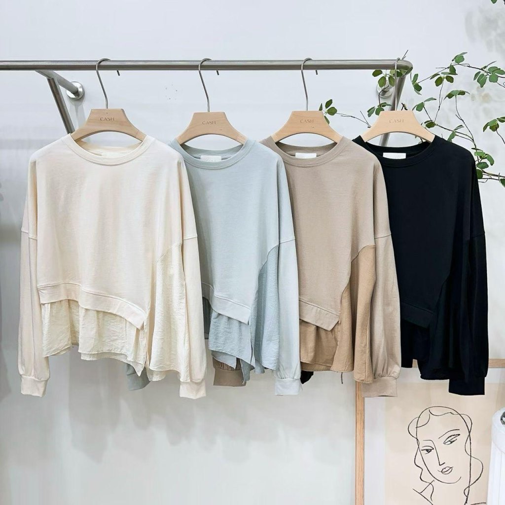 CH59 韓國 🇰🇷 CASH 拼布斜腳Top 長24寸、闊46寸 $229 米、藍、啡、黑