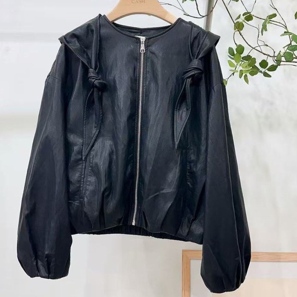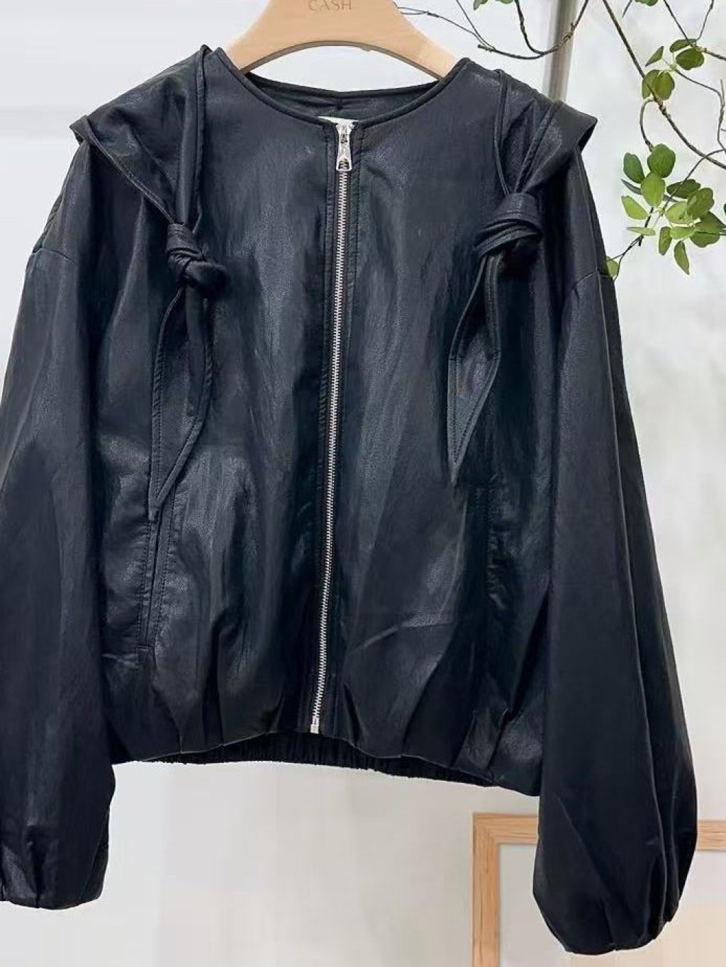 CH70 韓國 🇰🇷 CASH 扭結仿皮有帽拉鍊JK 長22寸、胸闊46寸、腳闊42寸 $339
