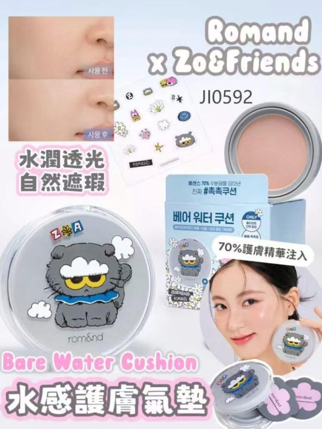 限量🌸Romand x Zo&friends : Bare Water Cushion💦🌼聯名限量版水感護膚精華氣墊