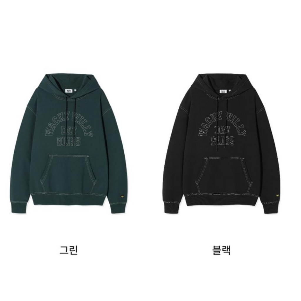 WA72 韓國🇰🇷潮牌火柴人 WACKY WILLY繡線字有帽衛衣 (WA2503HD16) $289 黑 綠 S、M、L、XL