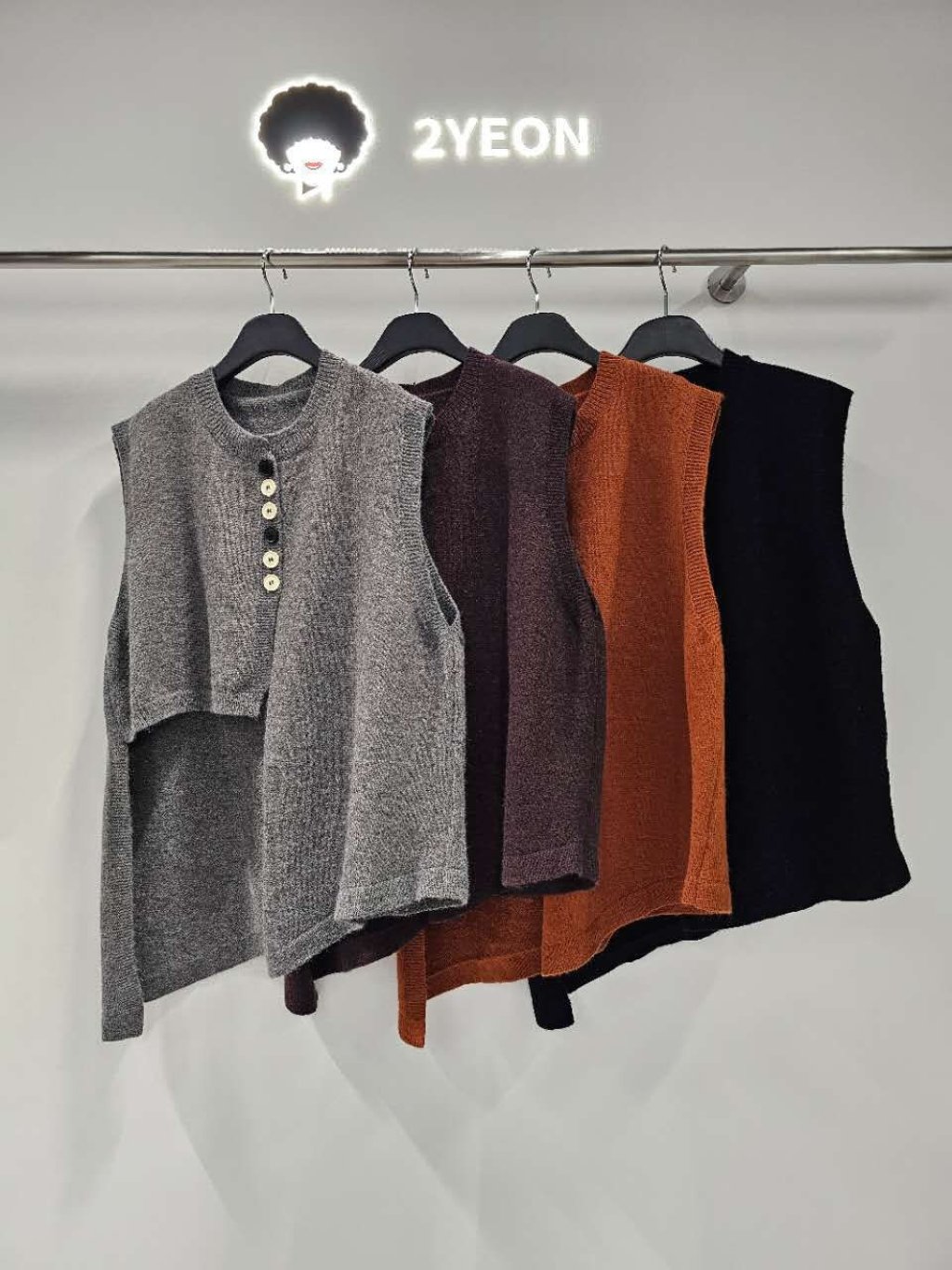 YE239 韓國 🇰🇷 2YEON 撞色排鈕長短腳冷背心 $259 灰、啡、橙、黑 左長27寸、右長17寸、總闊50寸