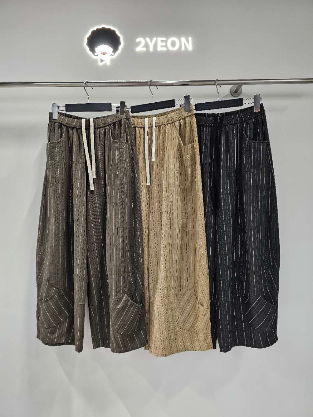 YE242 韓國 🇰🇷 2YEON 全橡筋腰索繩條子褲 $299 綠、杏、灰 腰26-42寸、Hip56寸、長89CM