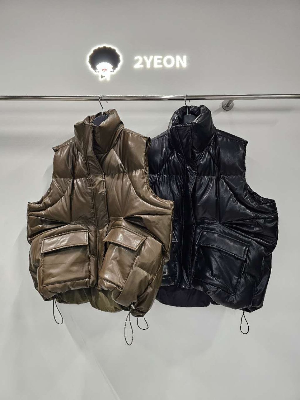 YE253 韓國 🇰🇷 2YEON 亮面雙袋夾棉背心JK $479 綠、黑 前長26寸、後長28寸、闊54寸