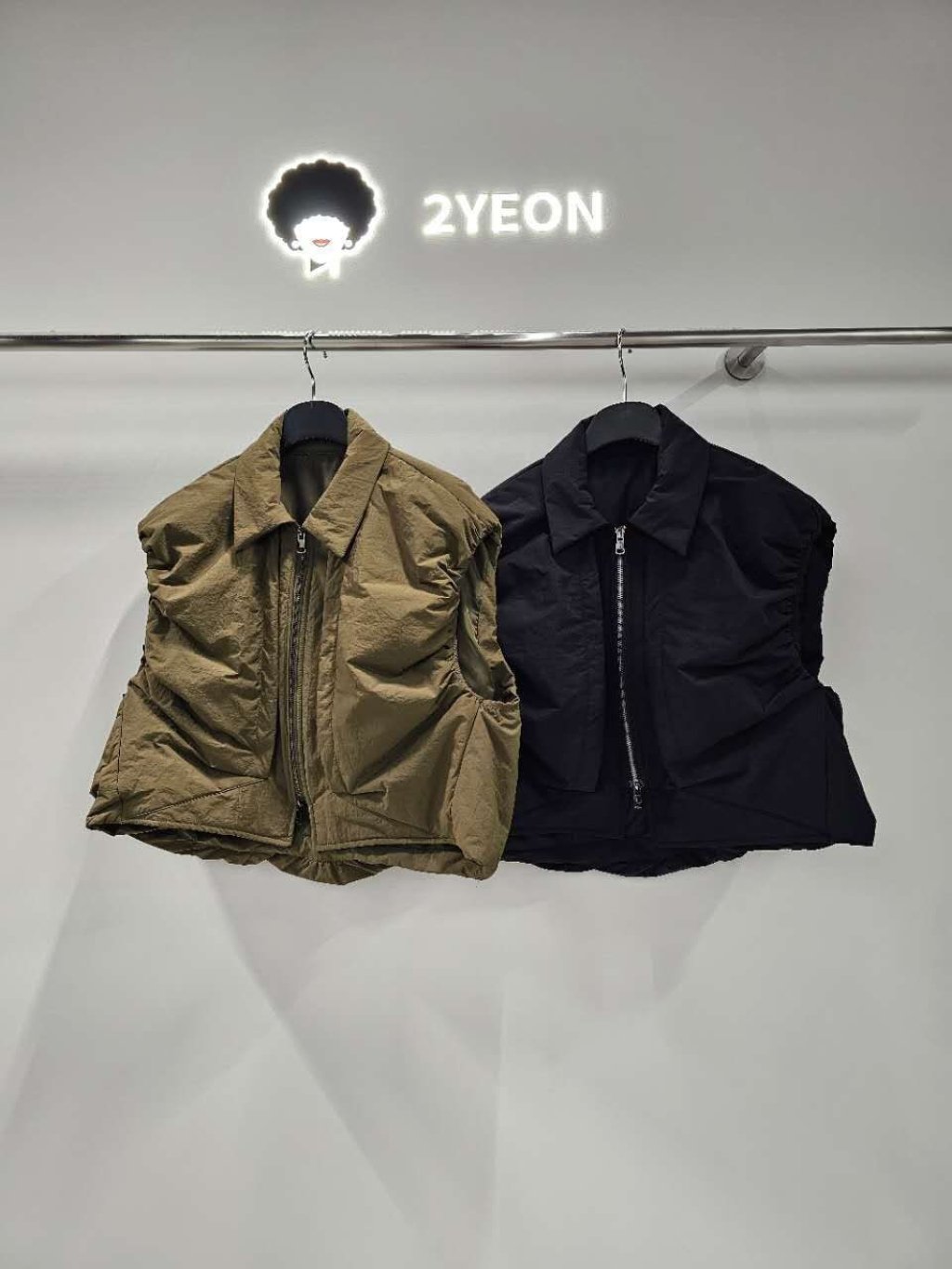 YE256 韓國 🇰🇷 2YEON 反領拉鏈背心 $329 綠、黑 前長18寸、後長20寸、總闊44寸