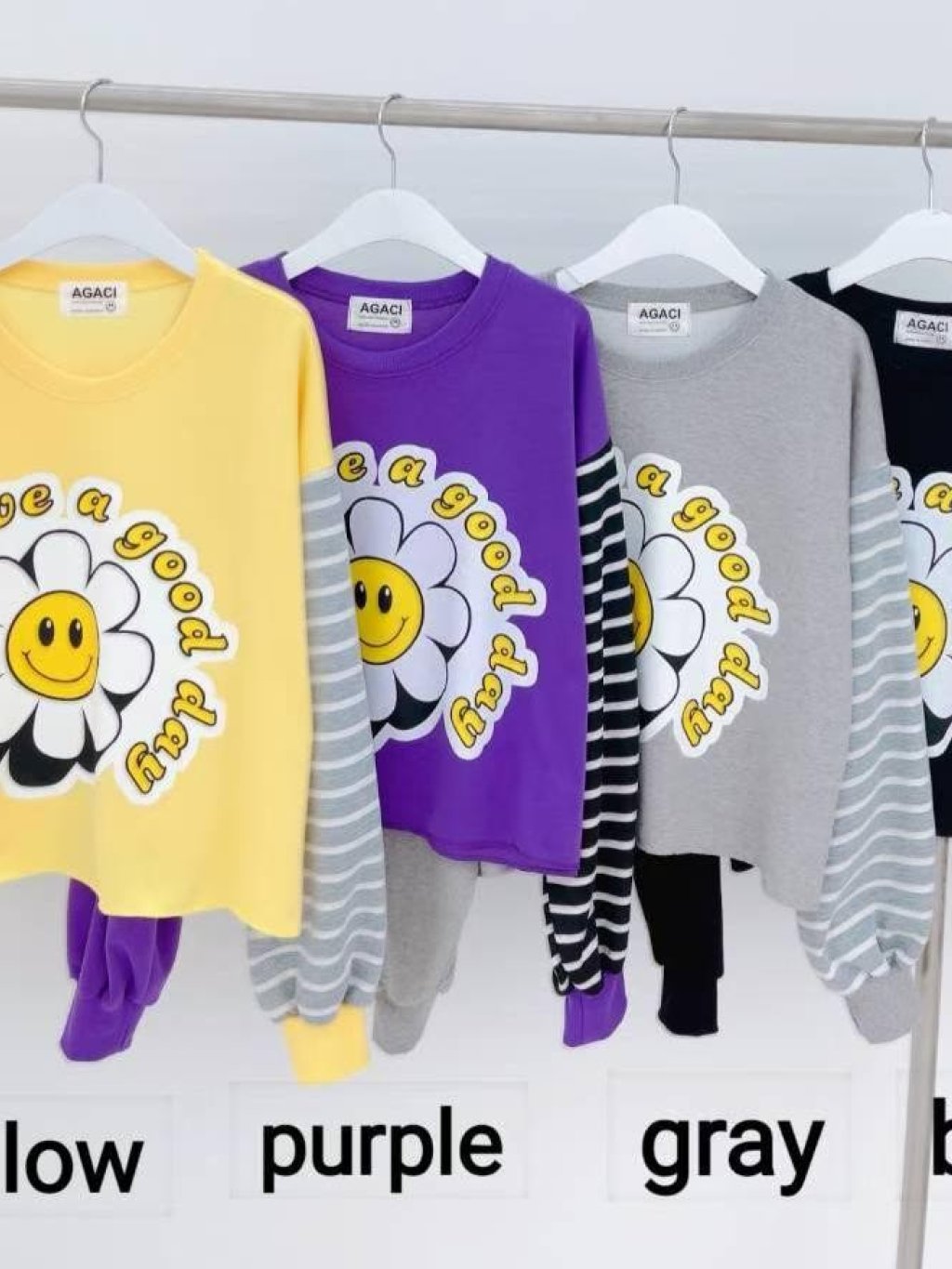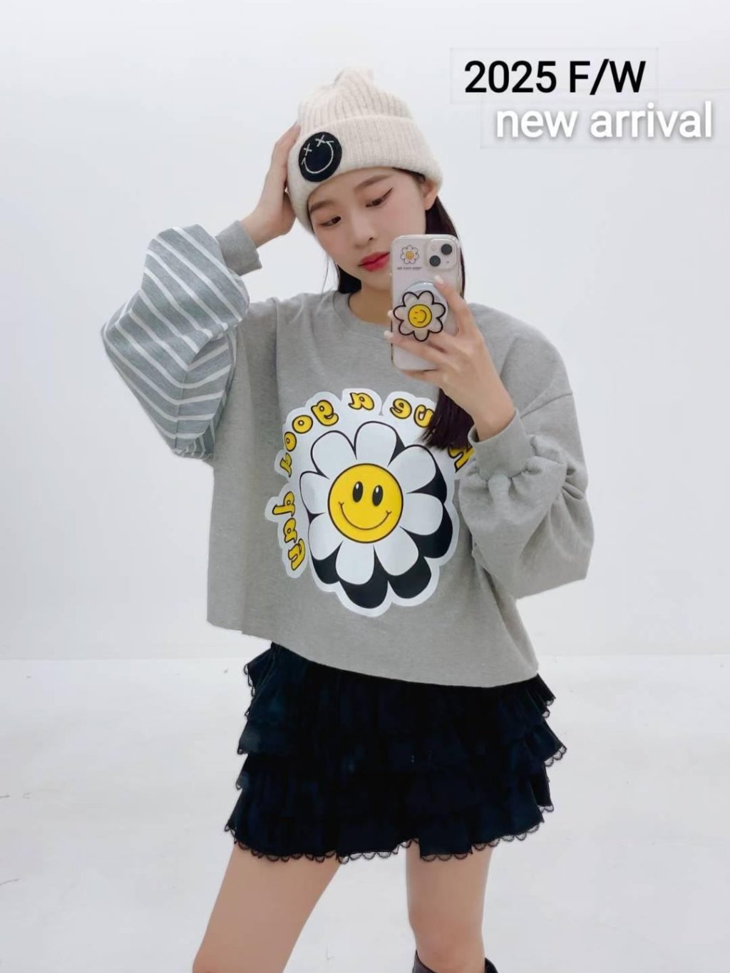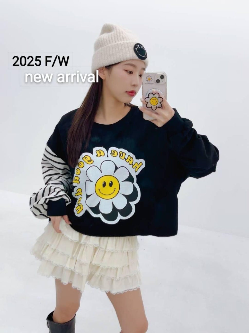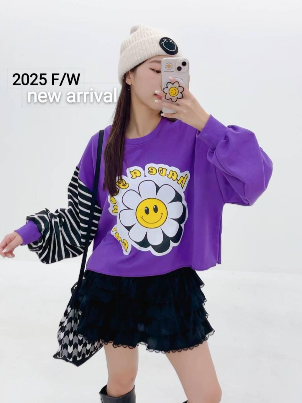 主頁 AA90 韓國 🇰🇷 太陽花單邊橫間袖Top $169 黃、紫、灰、黑 長21寸、闊54寸