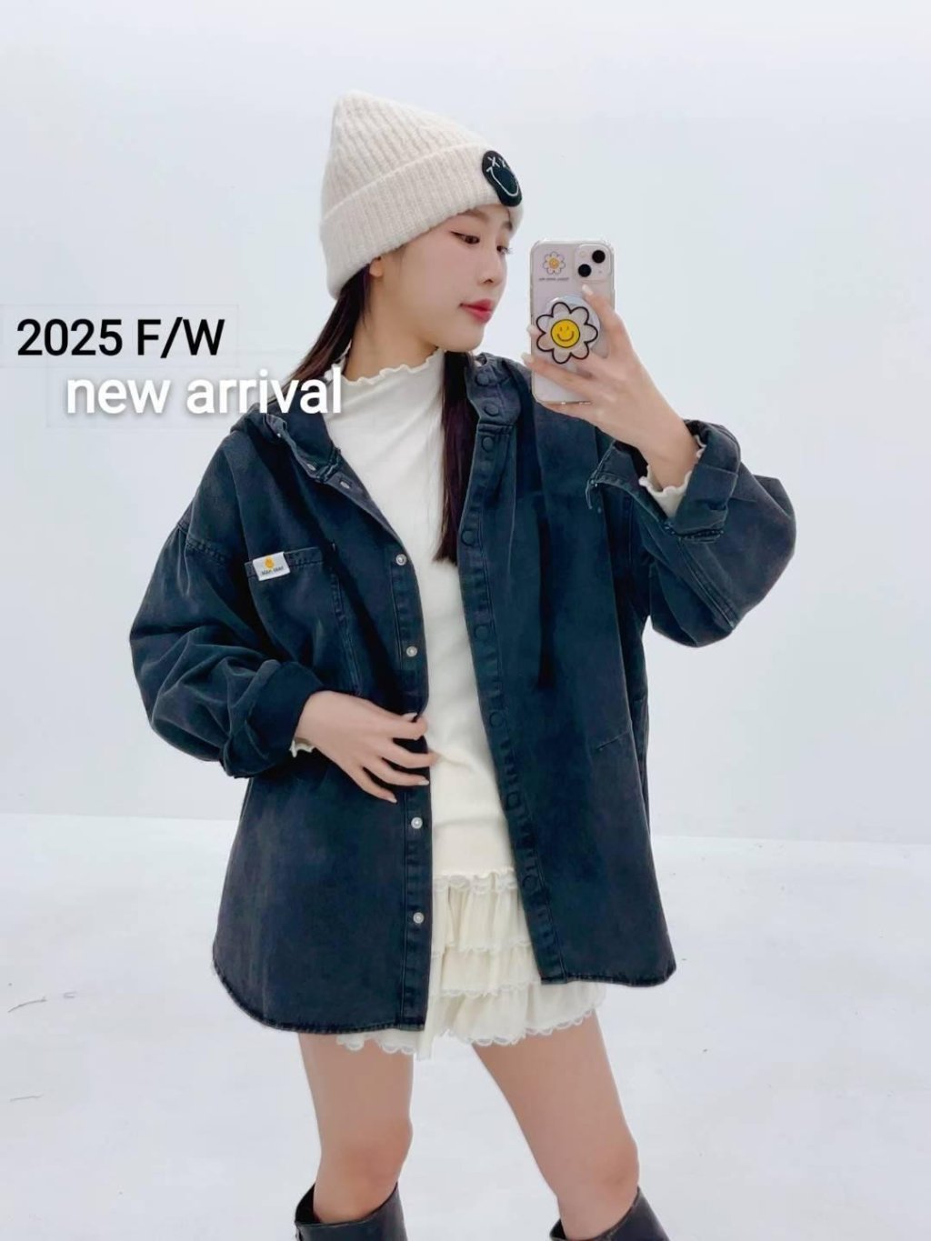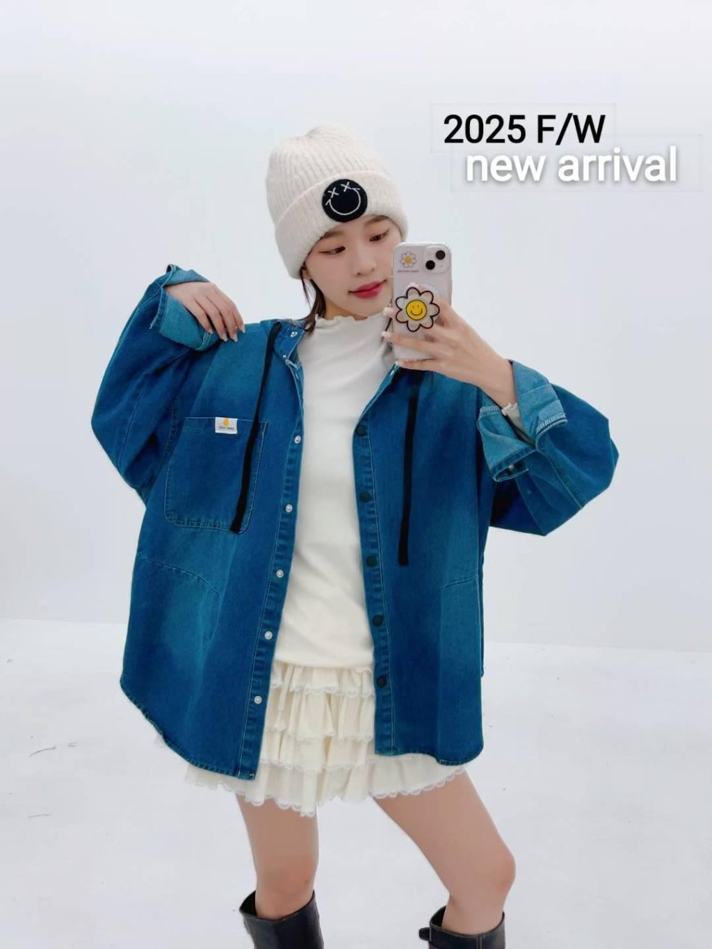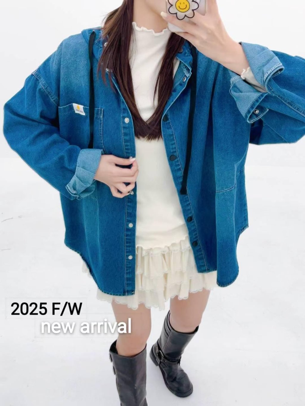 AA96 韓國 🇰🇷 排鈕有帽牛仔兩著Top $239 藍、黑 長27寸、總闊50寸