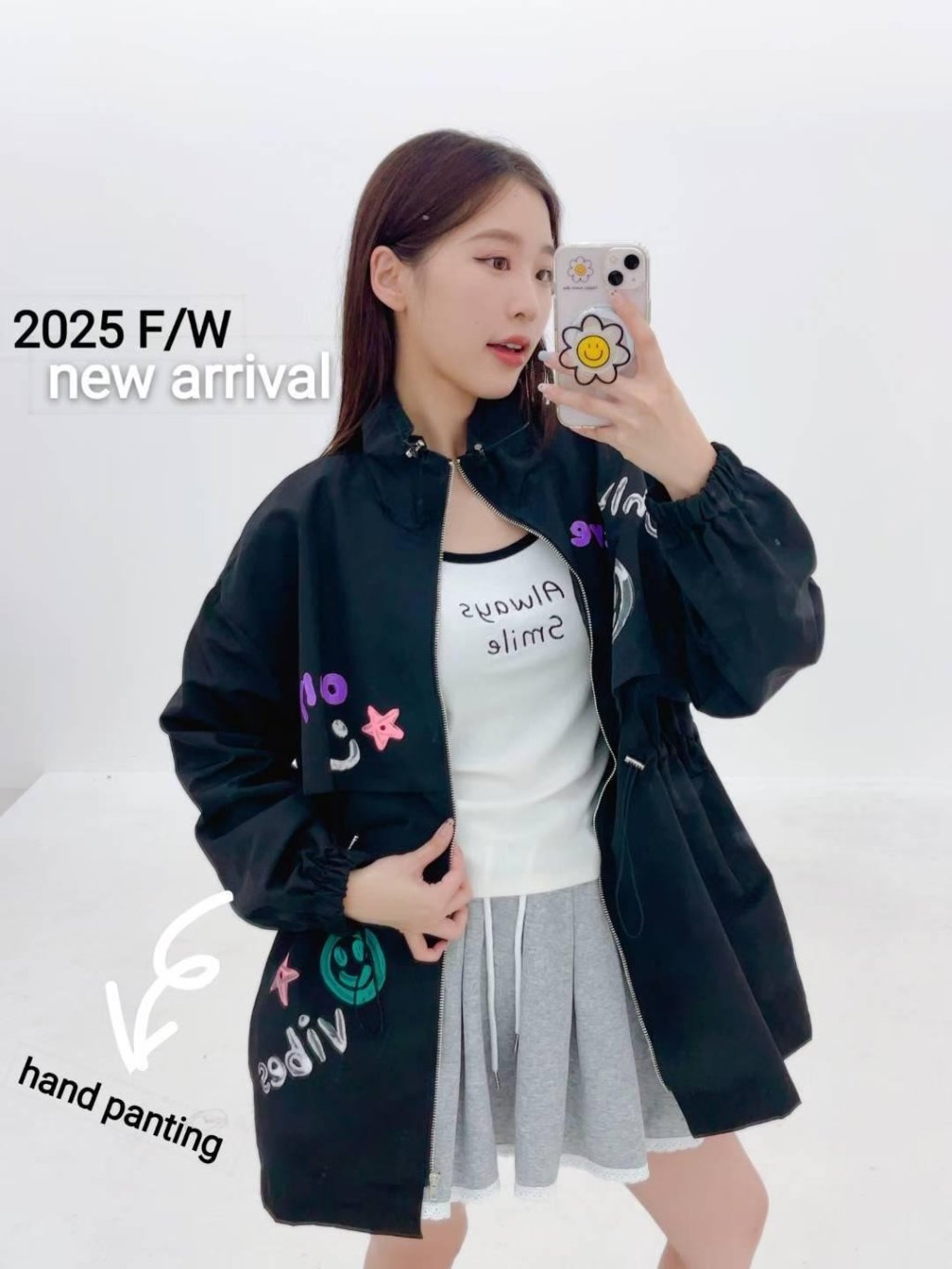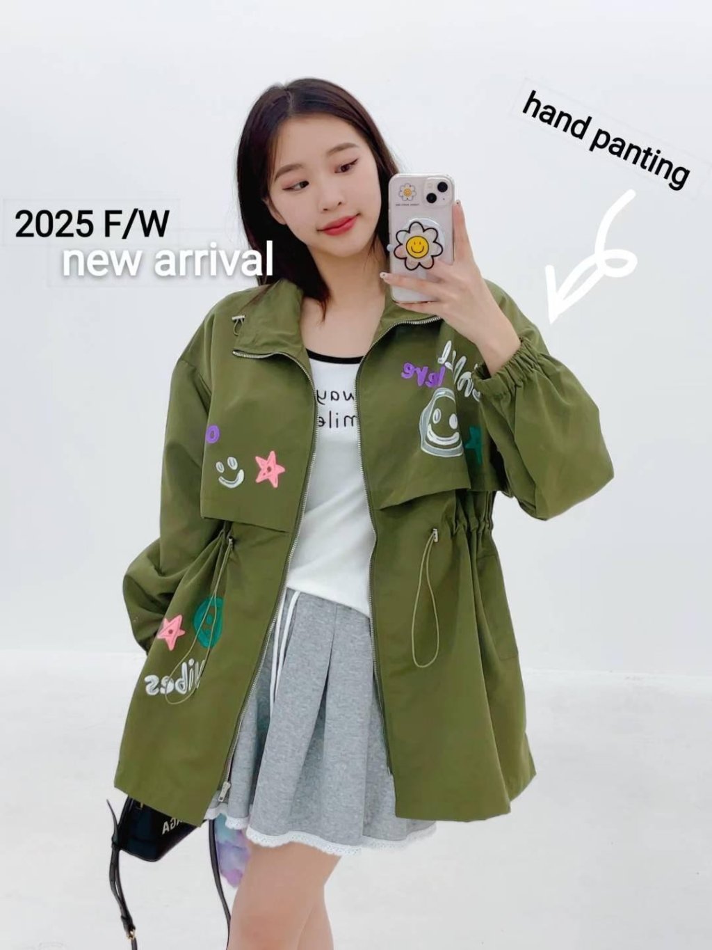 AA101 韓國 🇰🇷 手繪可束腰中長JK $299 綠、啡、黑 長28寸、闊52寸