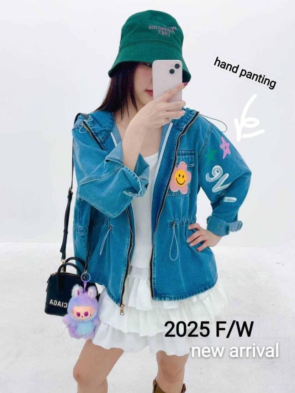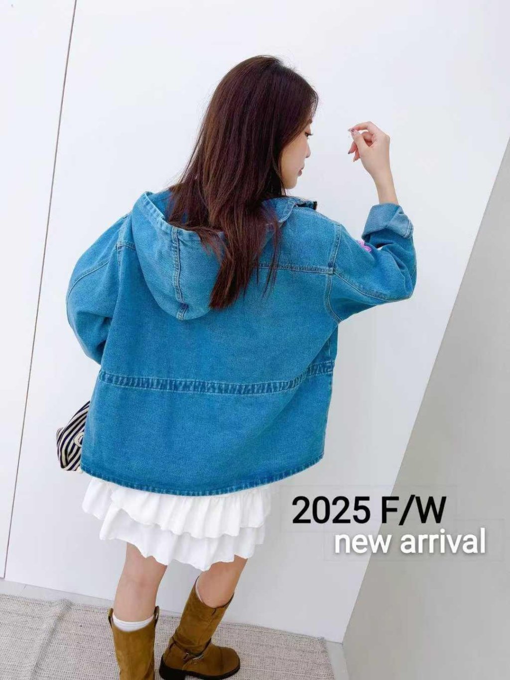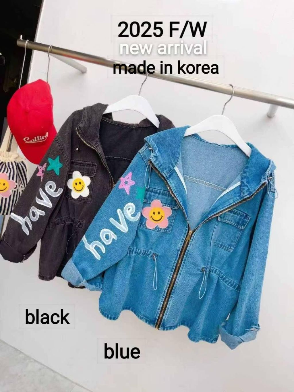 AA105 韓國 🇰🇷 手繪哈哈笑有帽牛仔JK $299 黑、藍 長25寸、總闊48寸