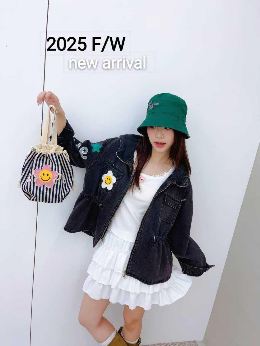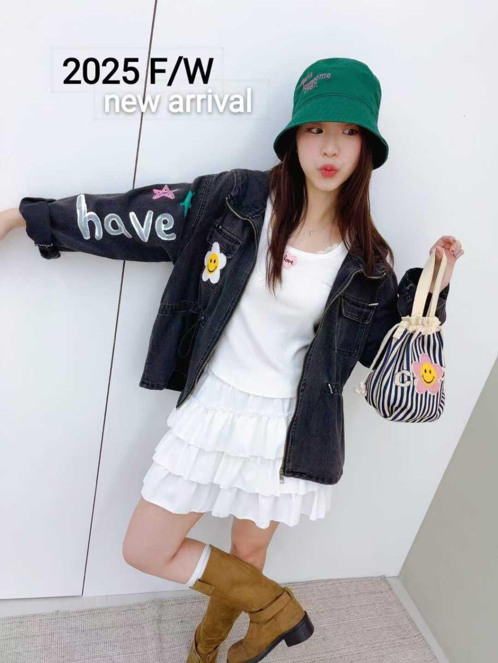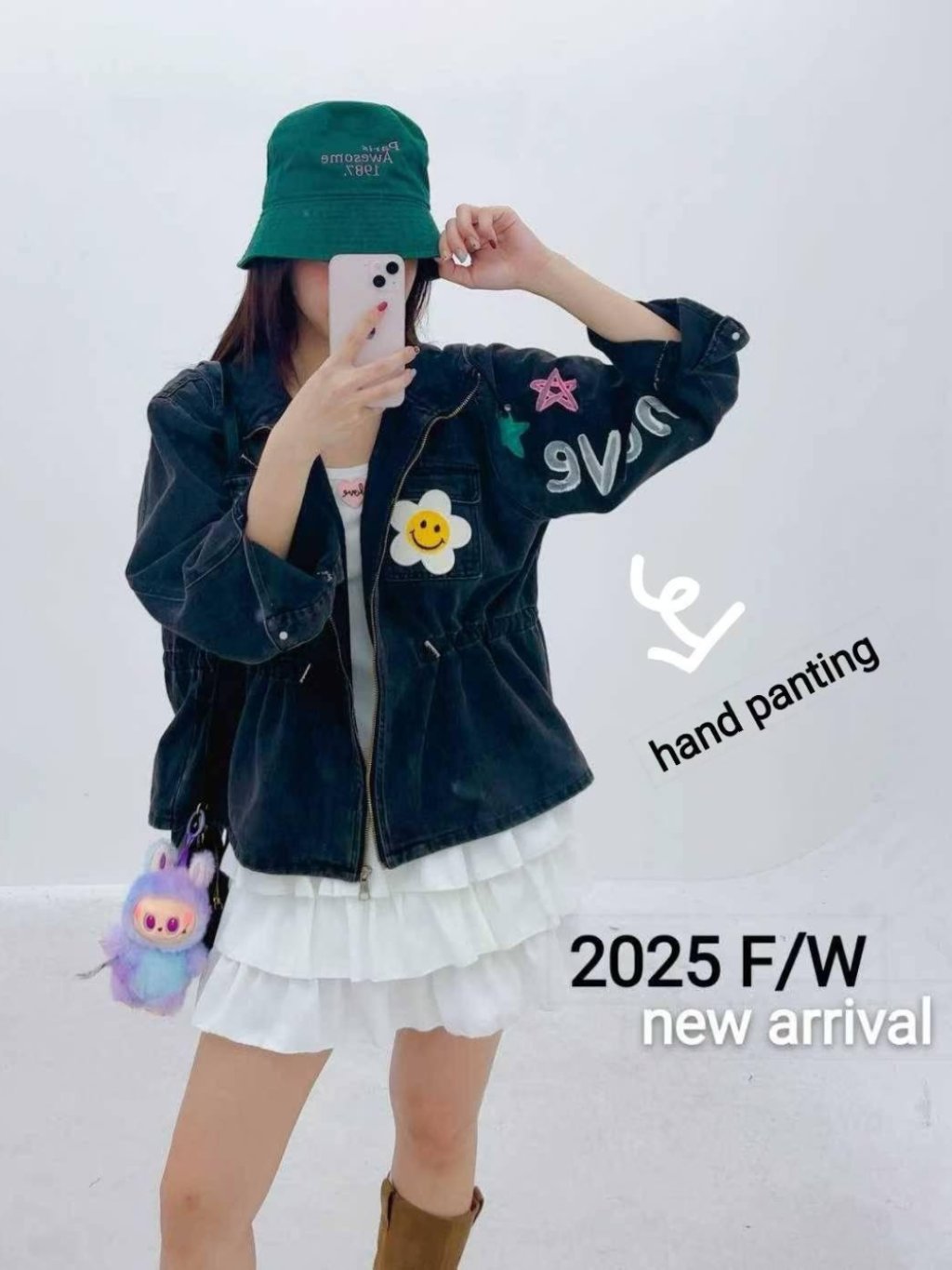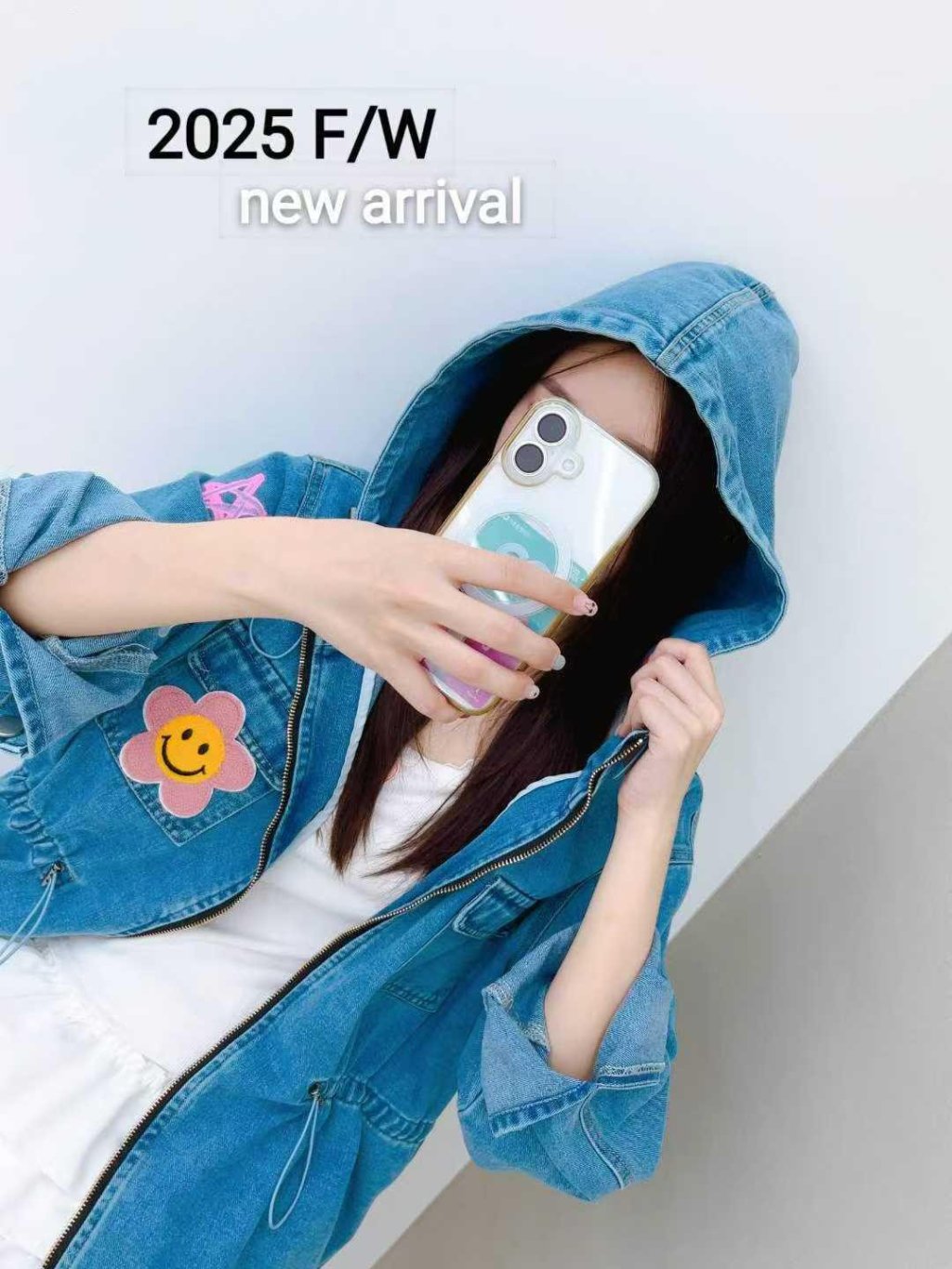 AA105 韓國 🇰🇷 手繪哈哈笑有帽牛仔JK $299 黑、藍 長25寸、總闊48寸