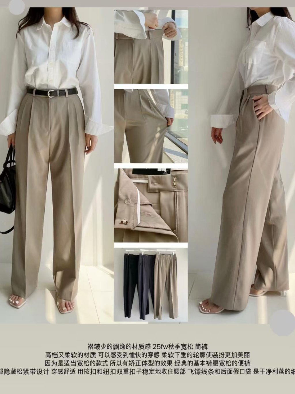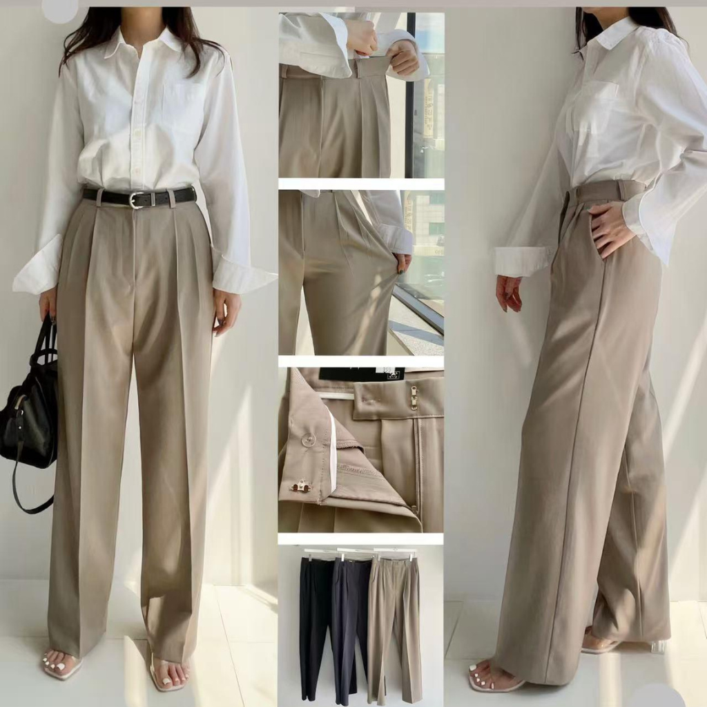 HK245 How Luk扣鈕拉鏈寬鬆筒褲 $169 灰色 S M XL 杏色S M L XL 黑色S M L XL No.355