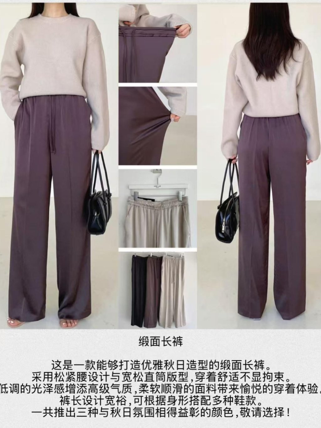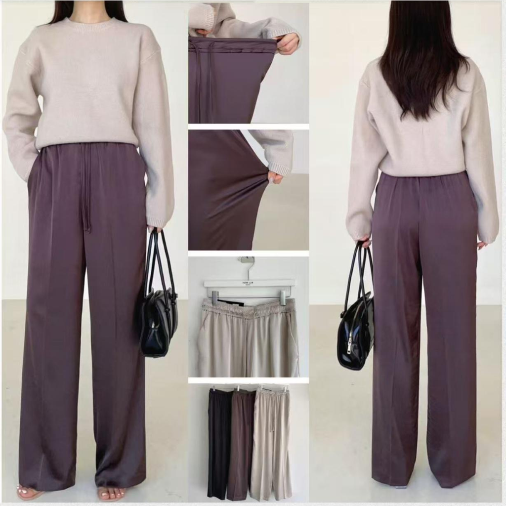 HK246 How Luk全橡筋腰索繩鍛面長褲 $179 黑色 S L 杏色 S L 啡色 S L No.356