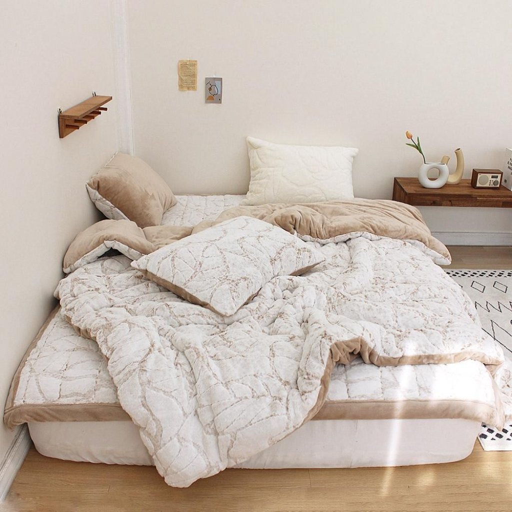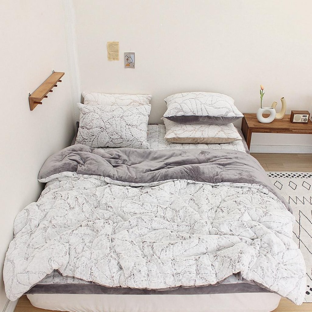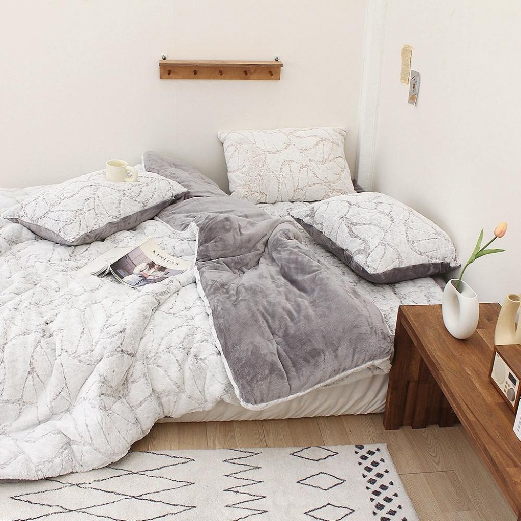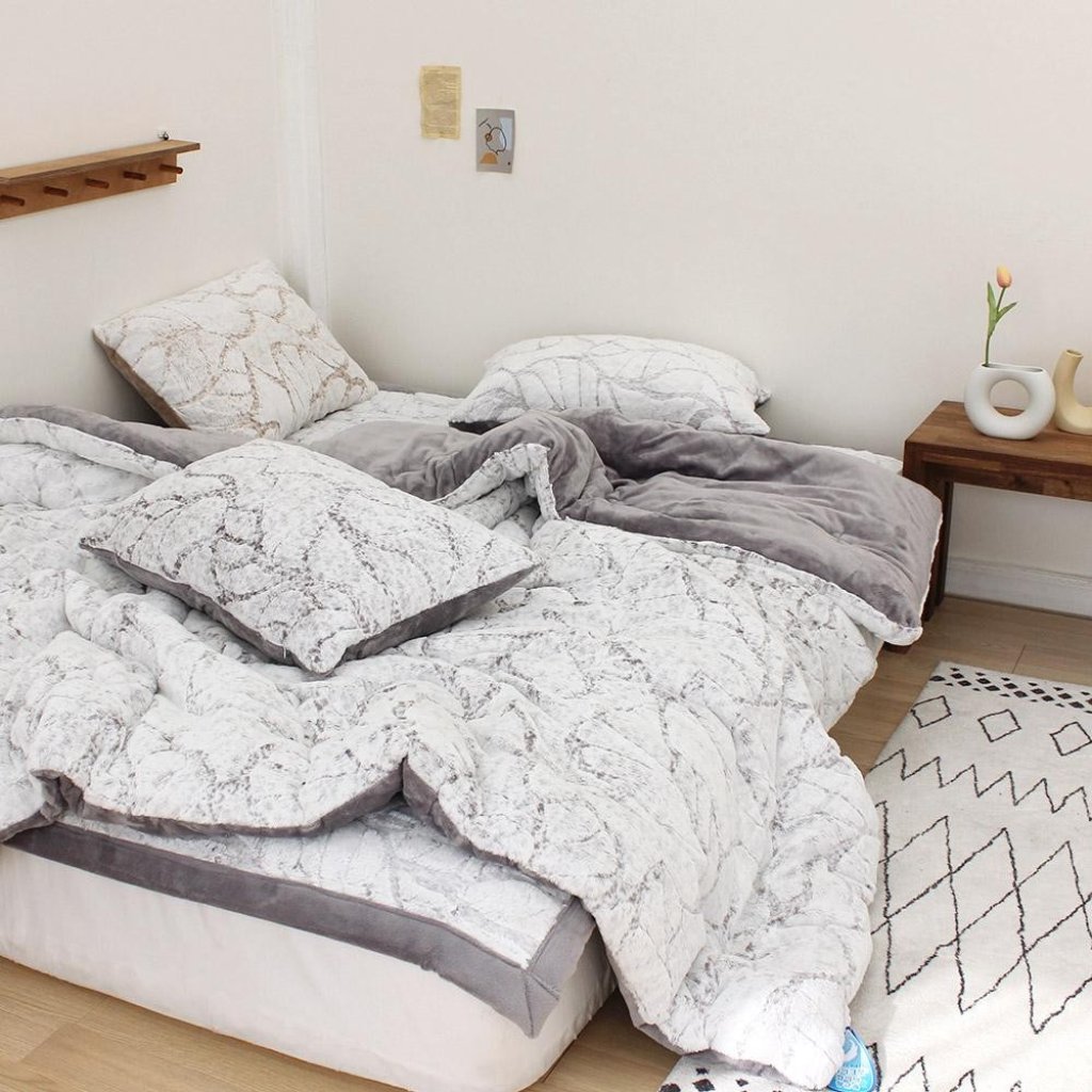 No.240 韓國🇰🇷石頭紋理毛茸茸(冬被系列) 被 顏色:灰、米 單人 160*210CM $399 雙人 200*230CM $499 枕頭袋 50X70CM $89