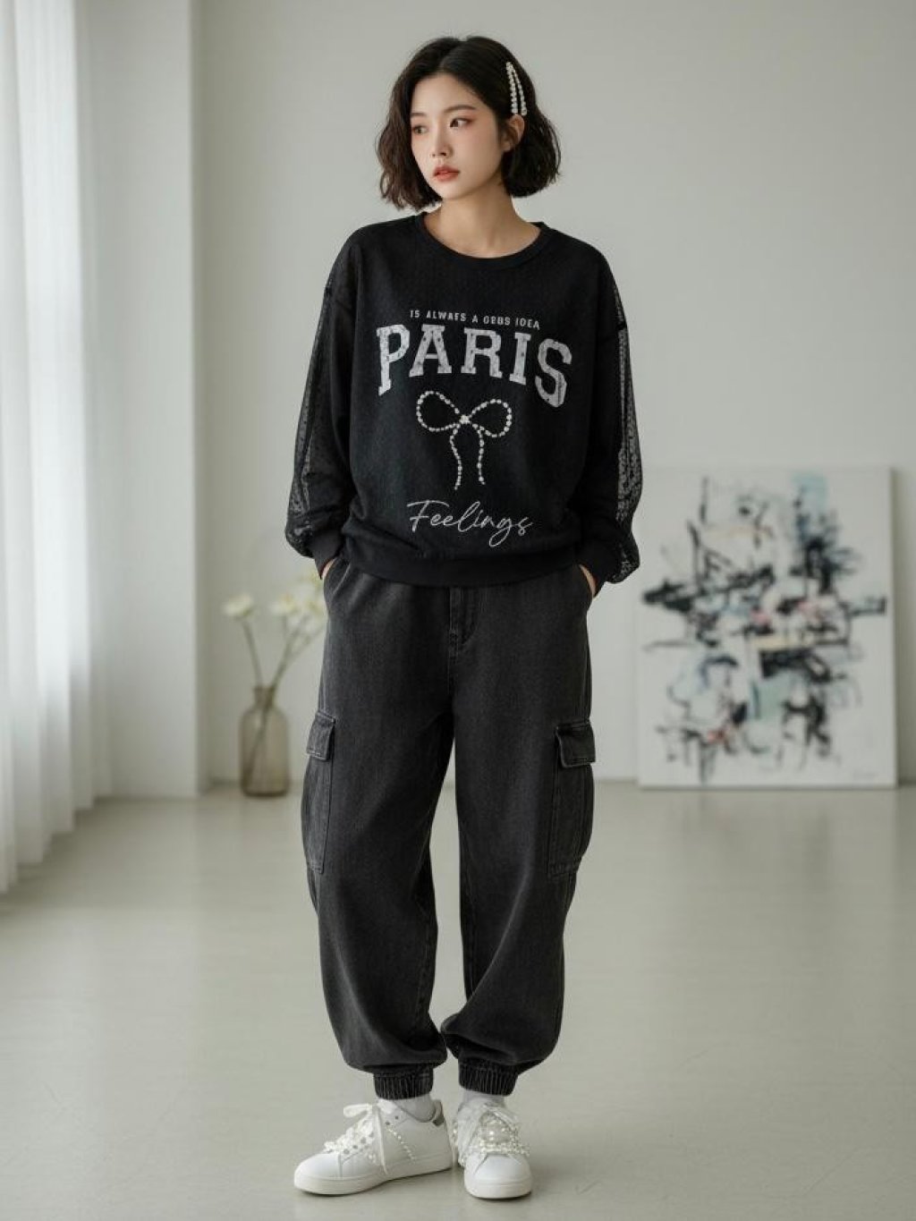KF754 PARIS 釘珠紗網 TOP $169 長28寸、闊54寸 黑、白
