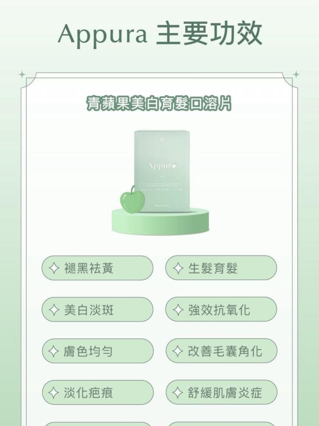 FD1801 GIRL WORLD Appura 青蘋果美白育髮口溶片(一盒30片) ❌原價$480❌ 新品優惠價$460/1盒,$1350/3盒,2580/6盒,$3333/8盒 ‼️首批優惠‼️買8盒送1盒