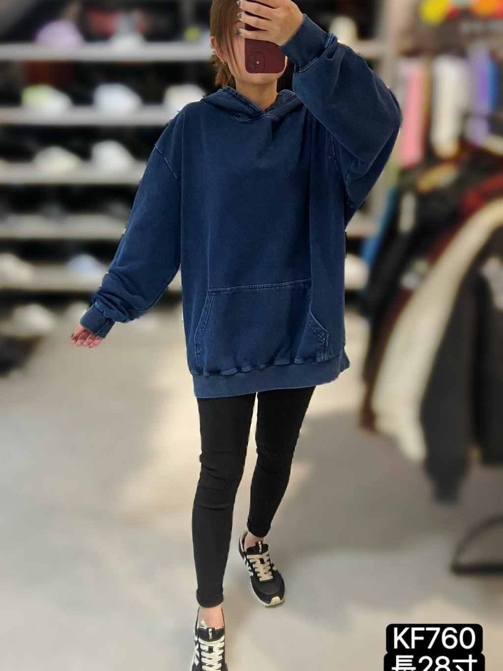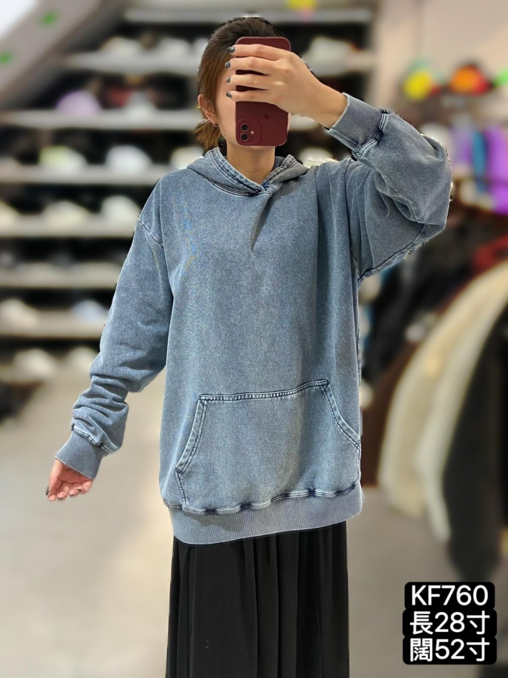 KF760 洗水牛仔有帽TOP $179 深藍、淺藍 長28寸、闊52寸