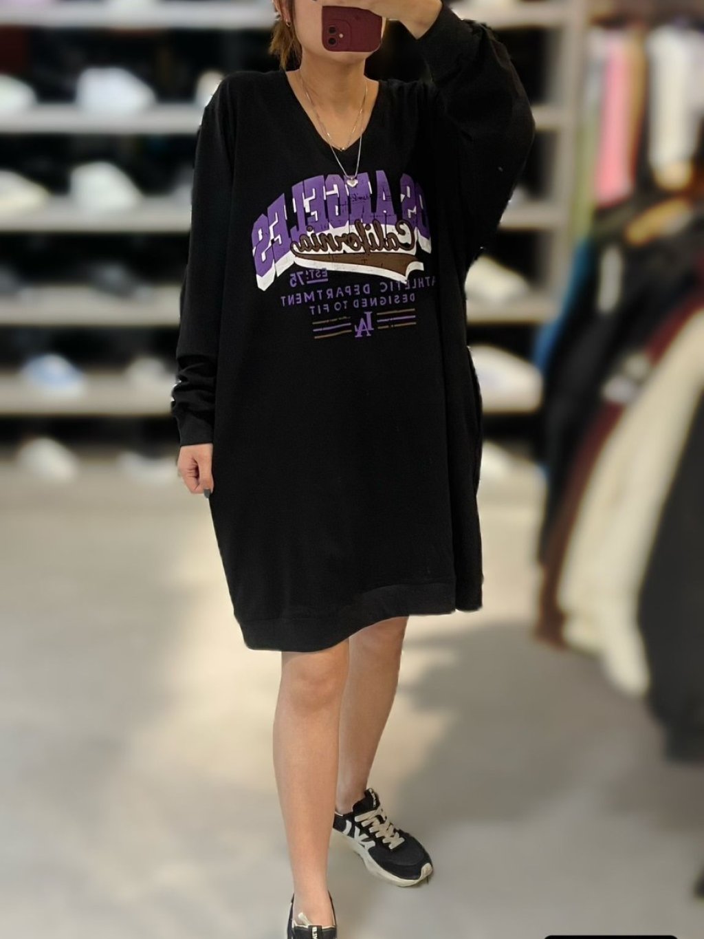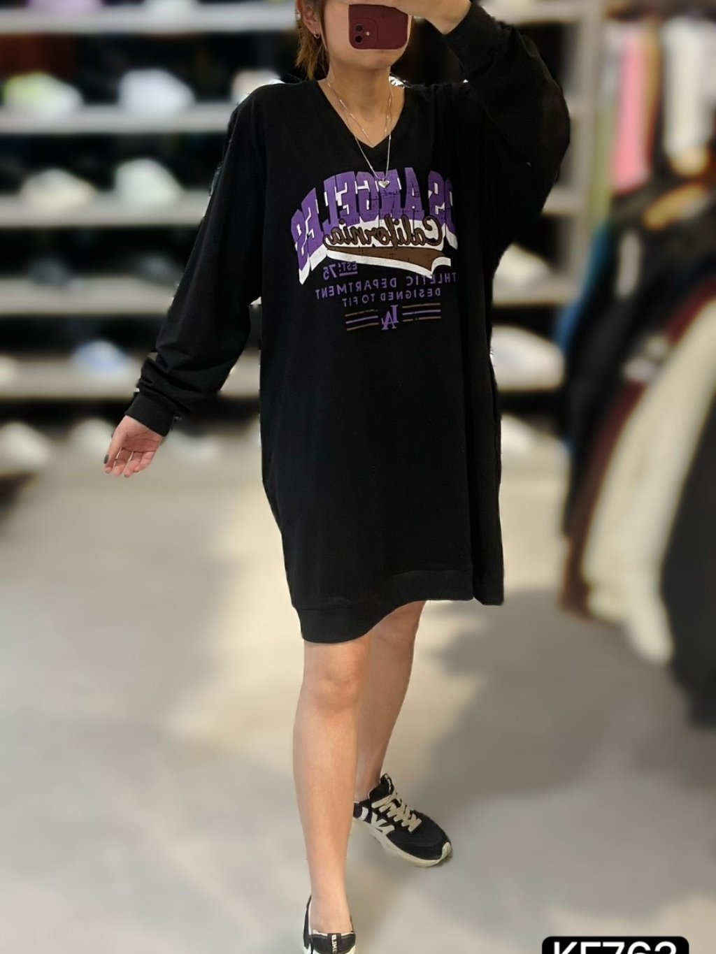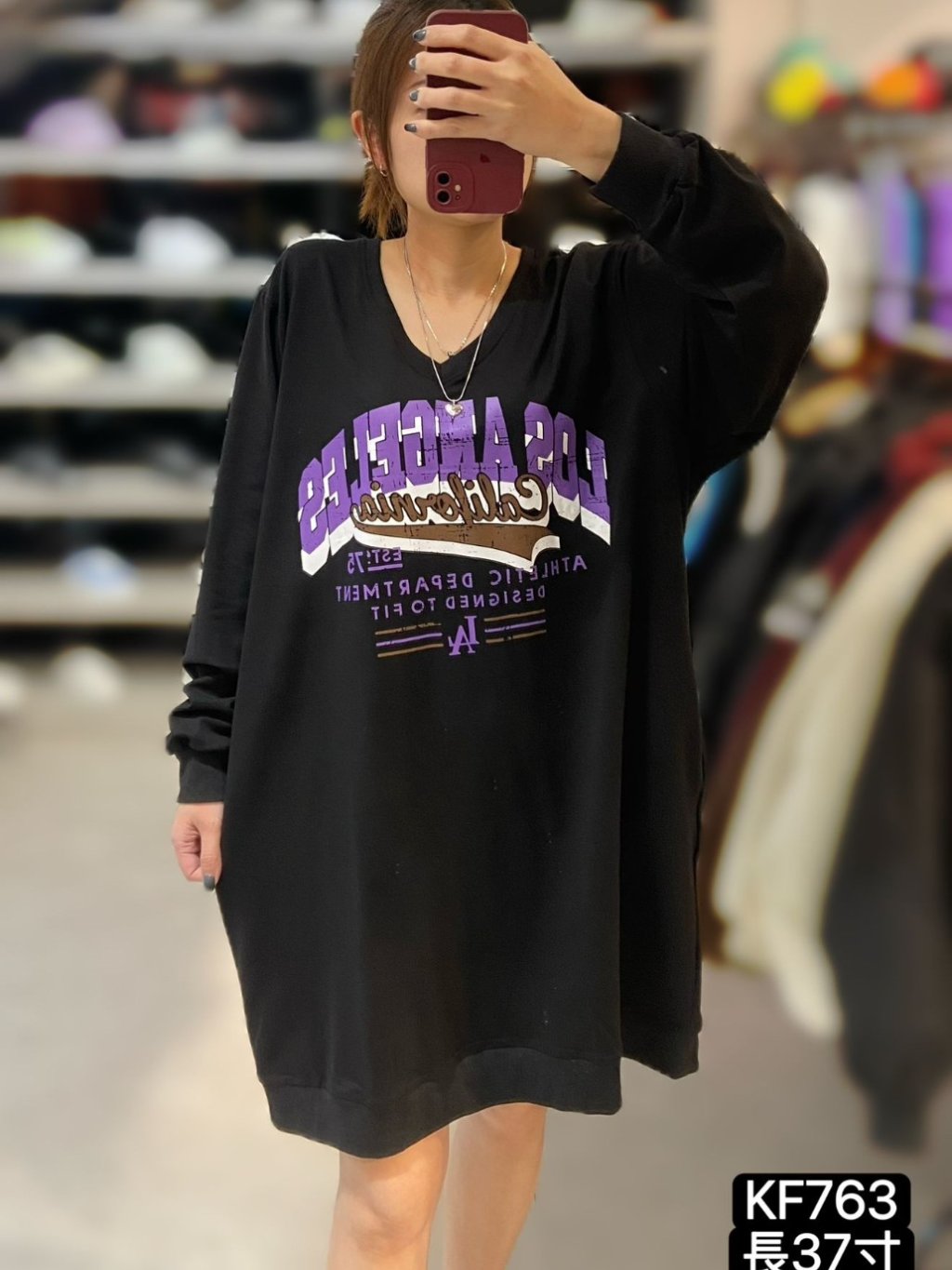 KF763 棉料V領紫啡字OPS 長37寸、闊52寸 $179