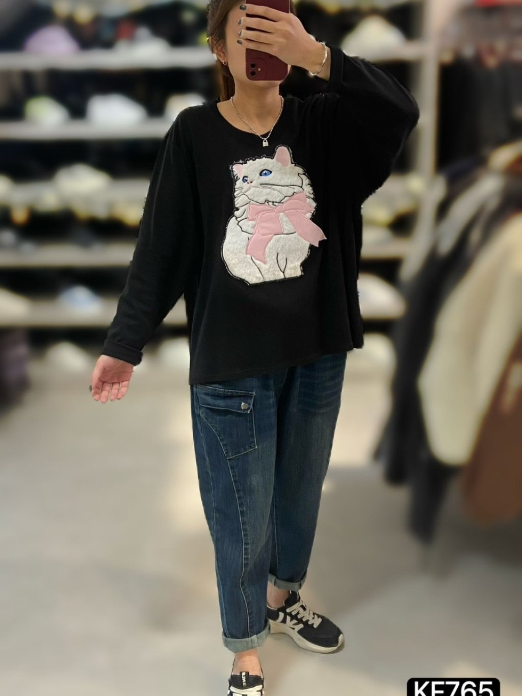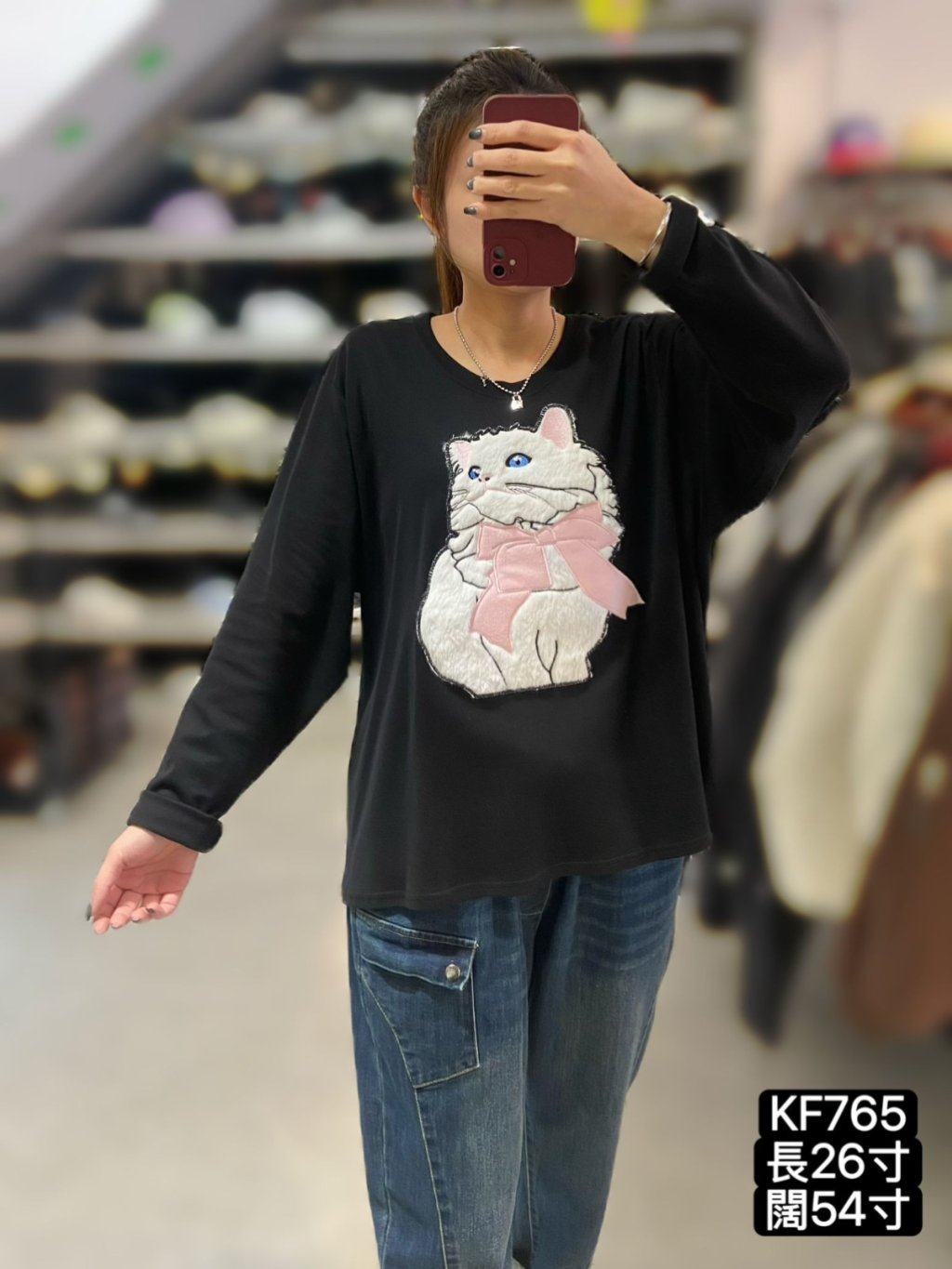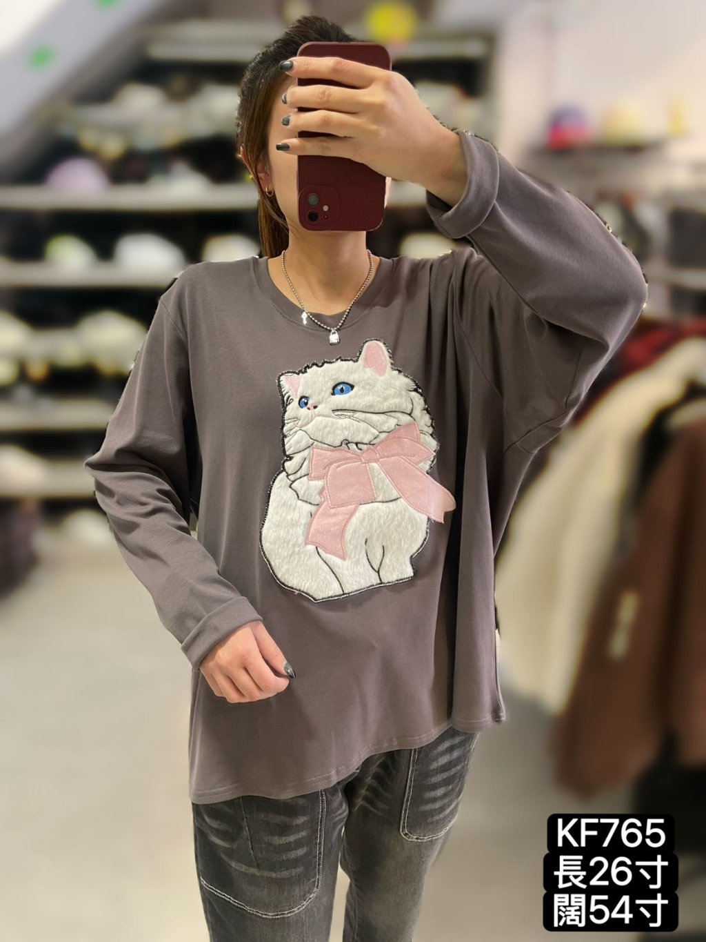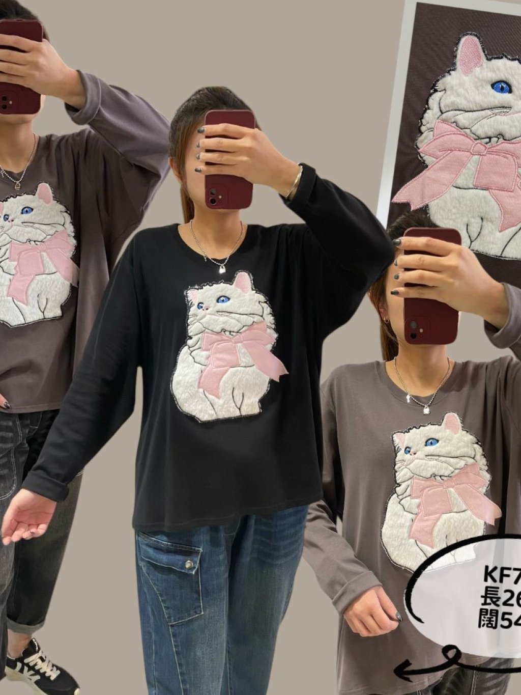 KF765 棉料立體貓貓TOP 黑 灰 長26寸、闊54寸 $139