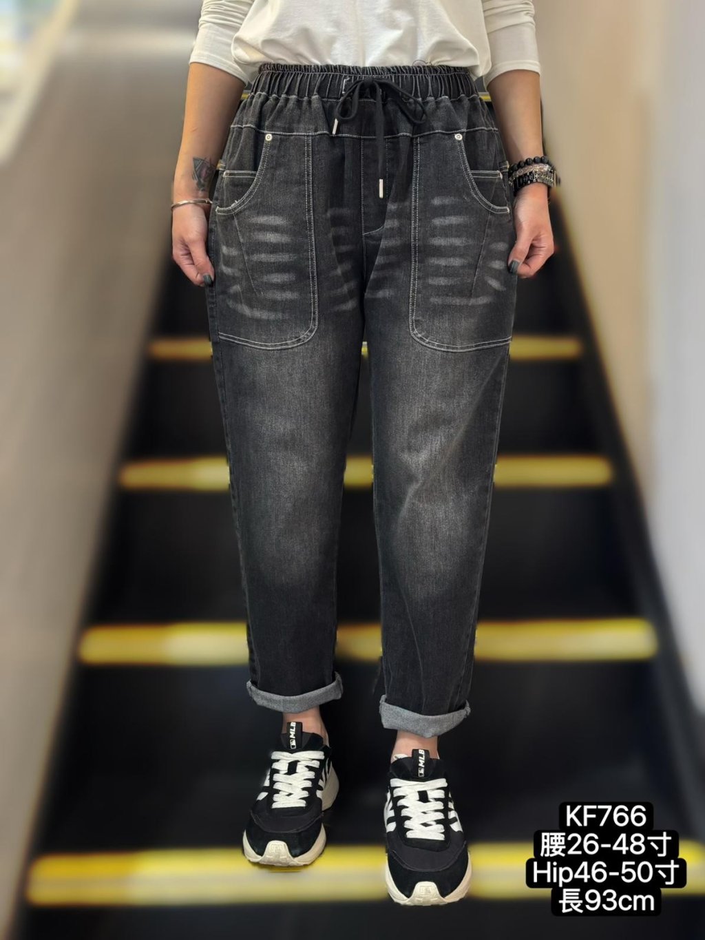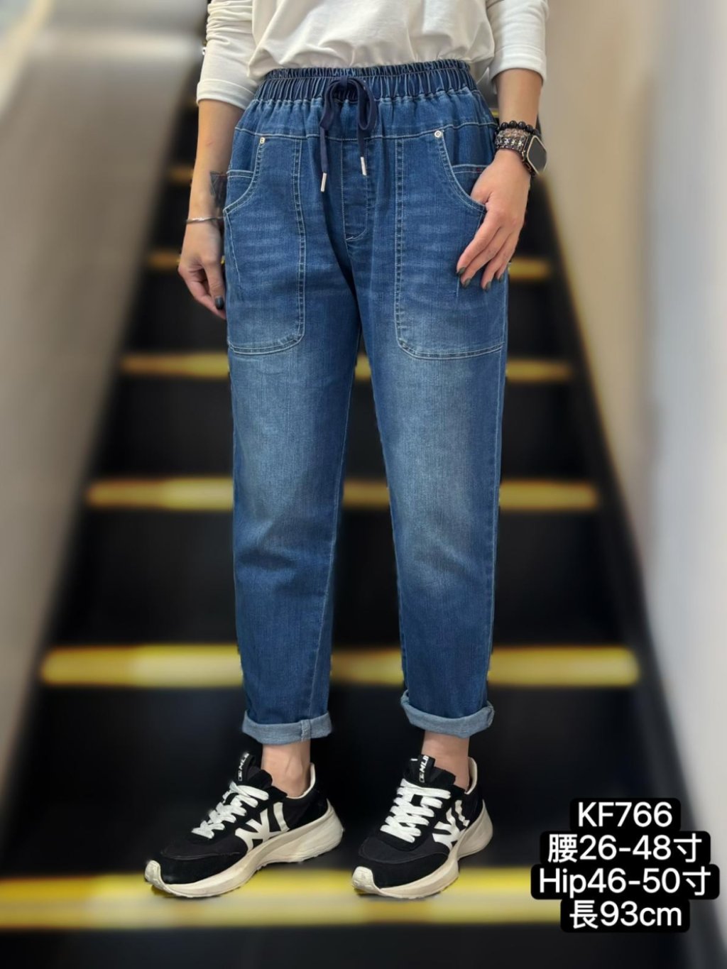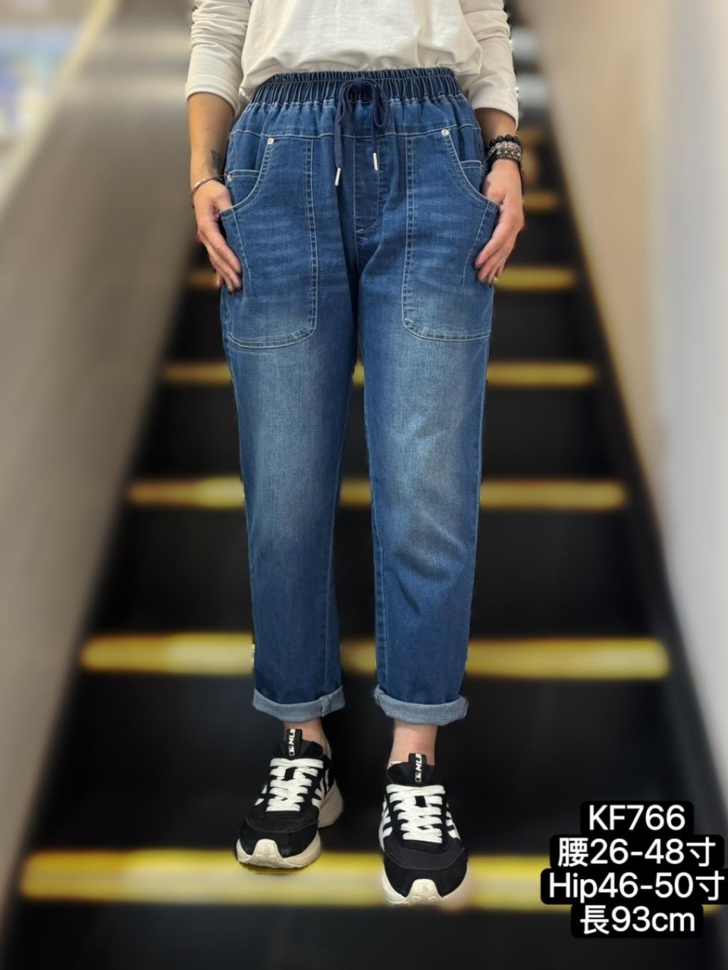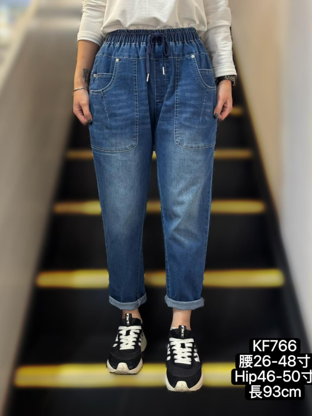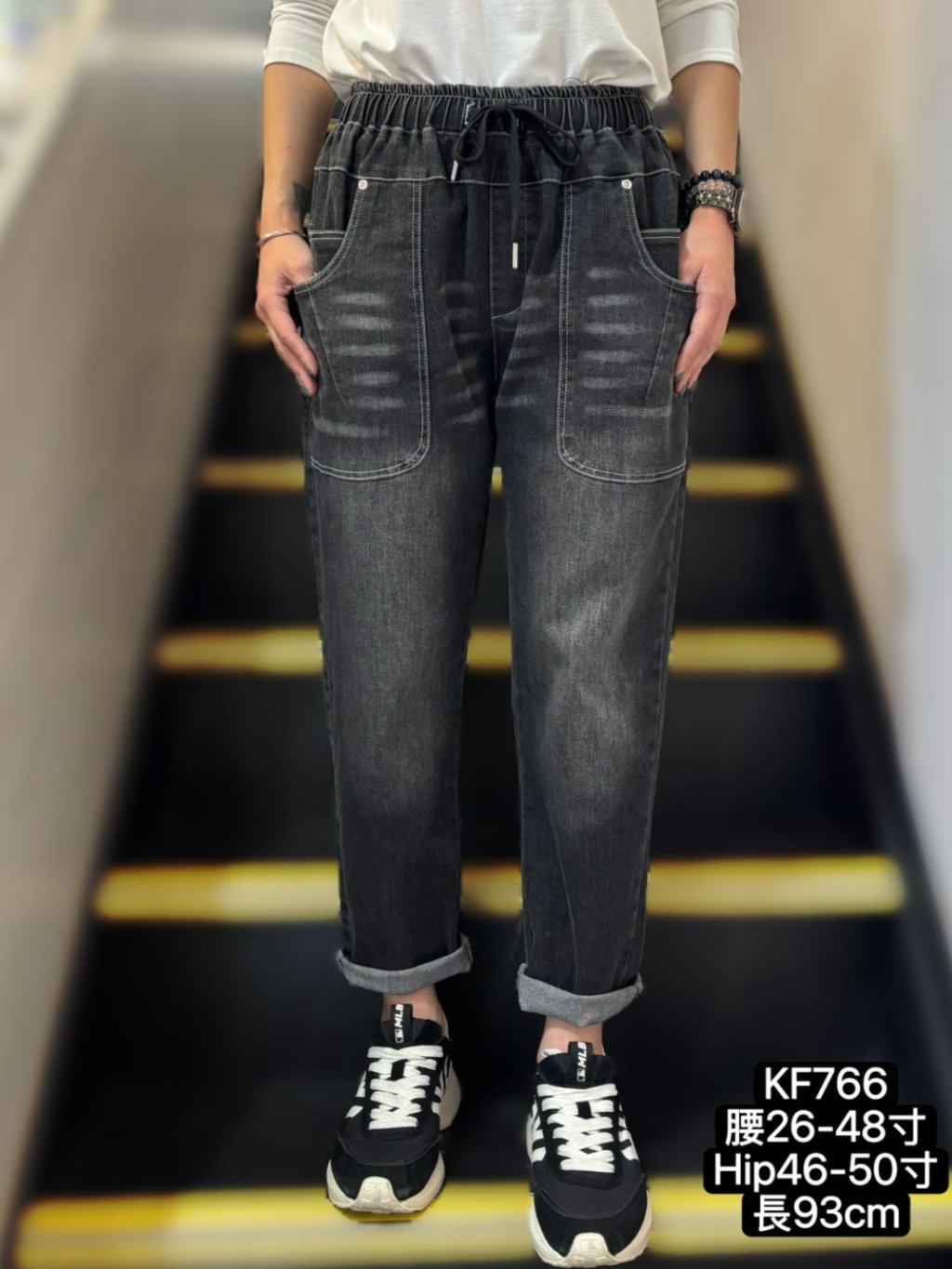腰:26-48吋、 Hip:46-50吋、 褲長:93cm