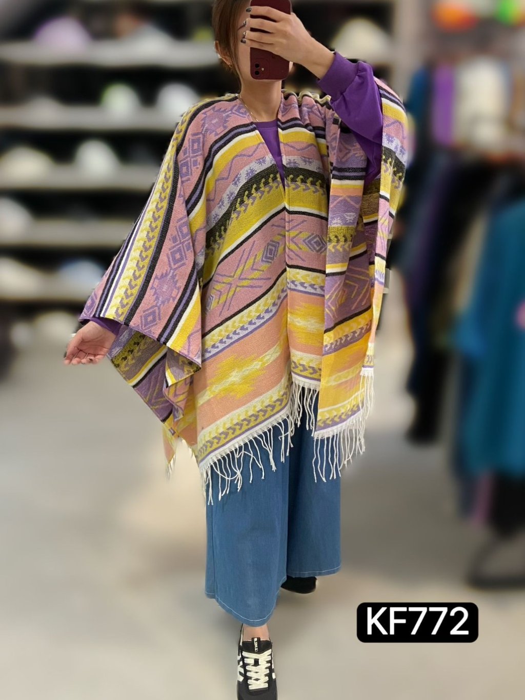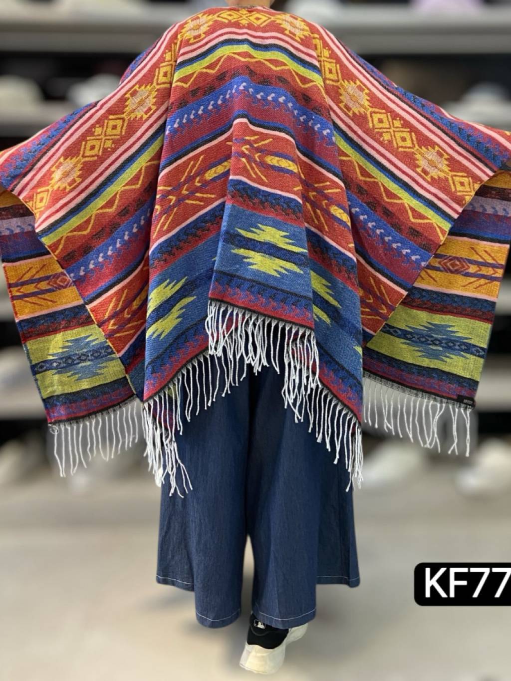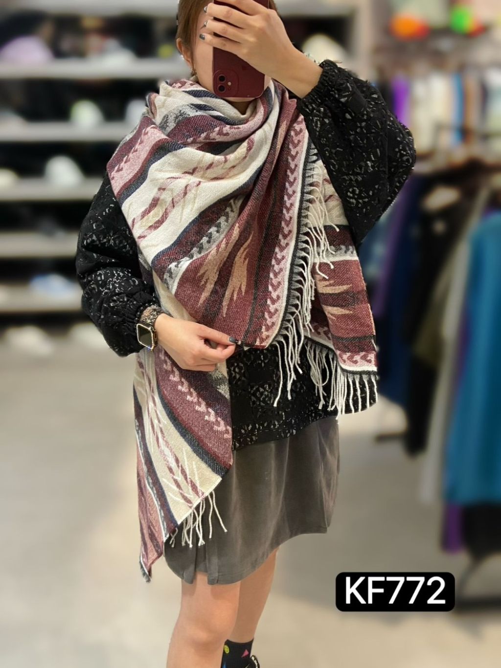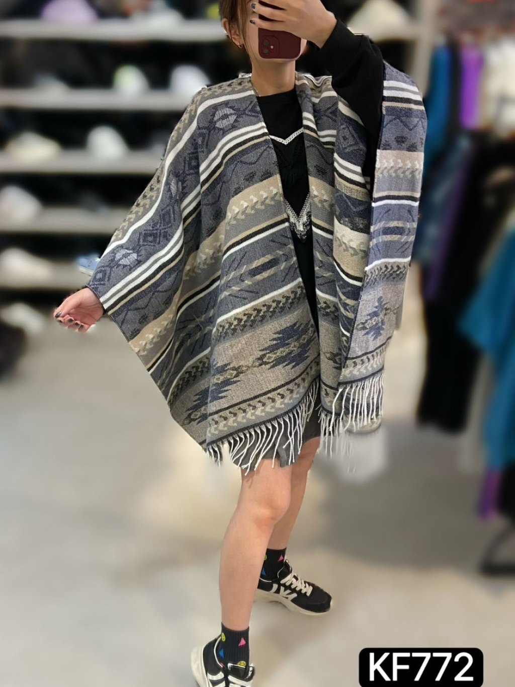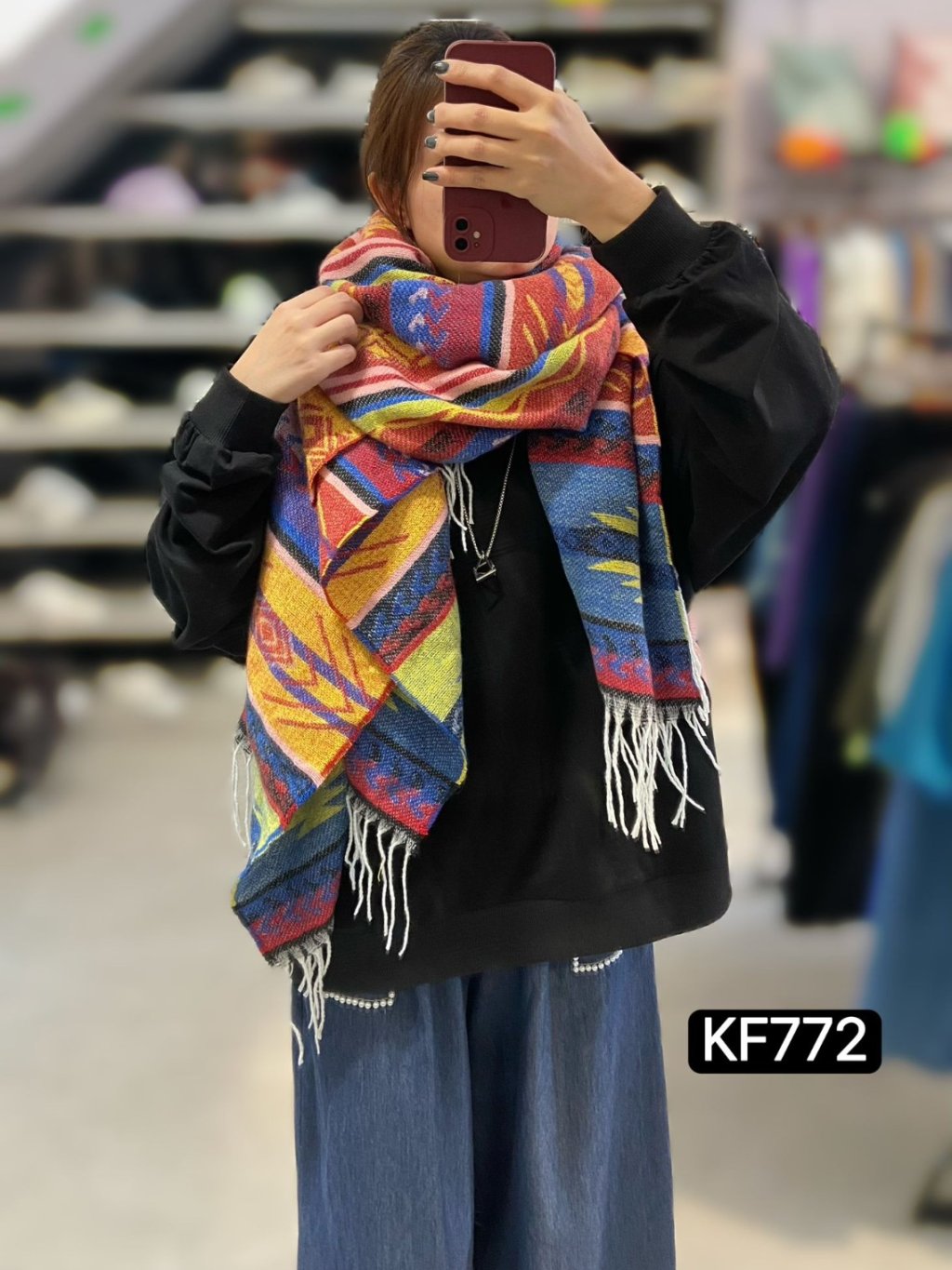 KF772 高質民族風撞色流蘇披肩 灰黑、紅藍、紫黃、杏紅 $149