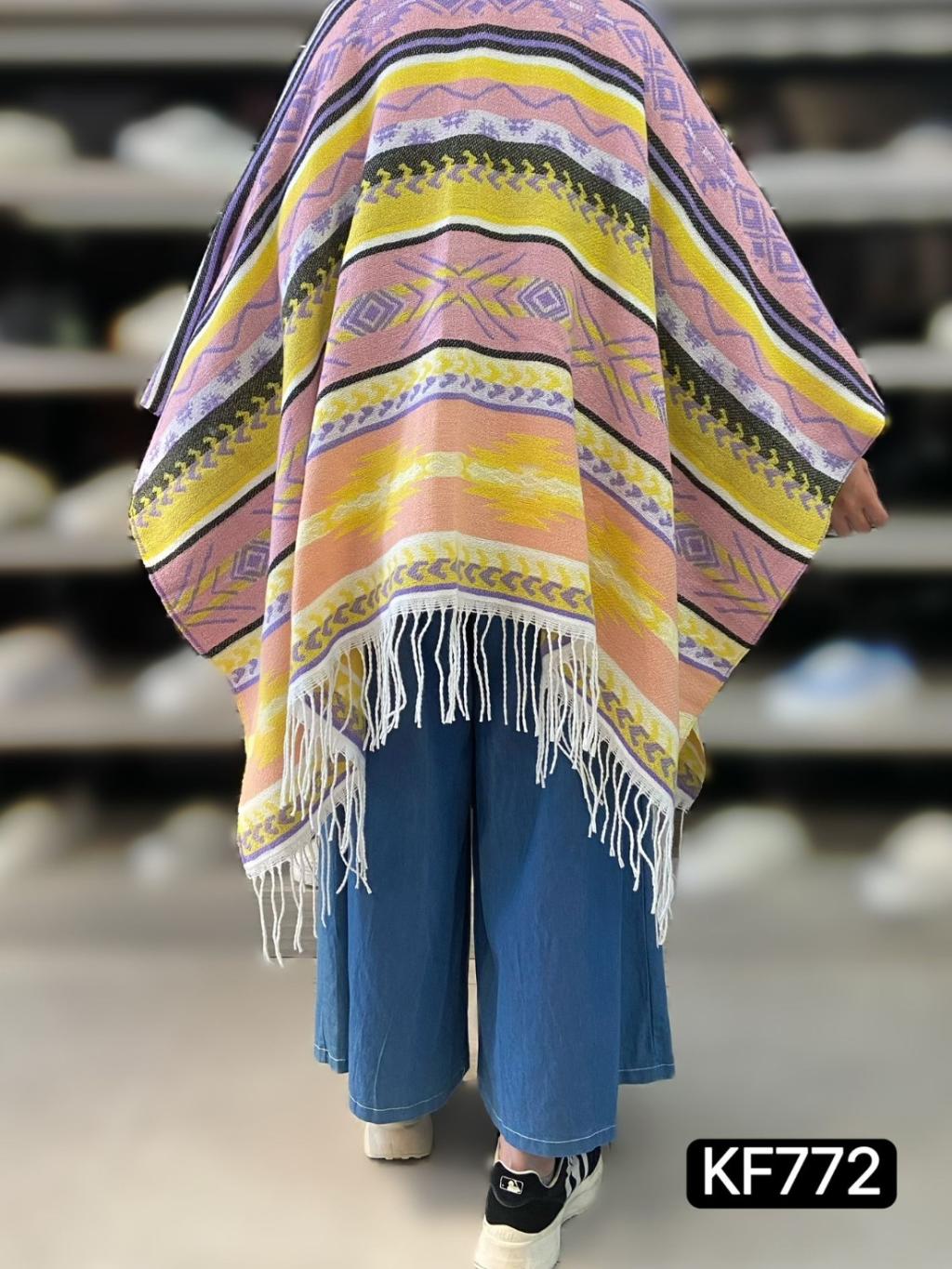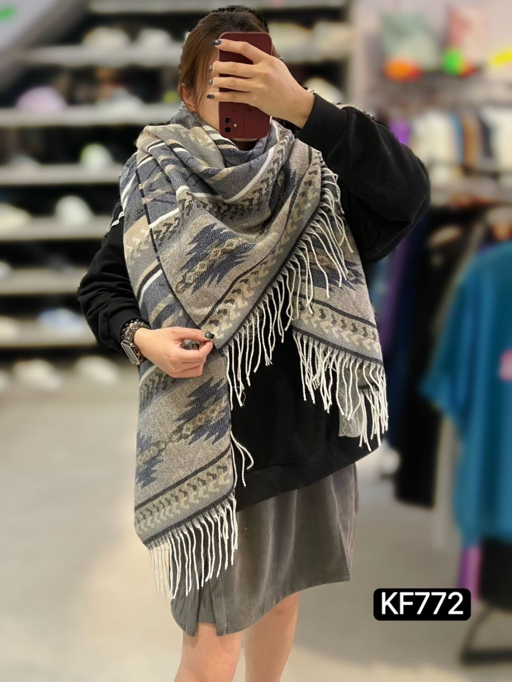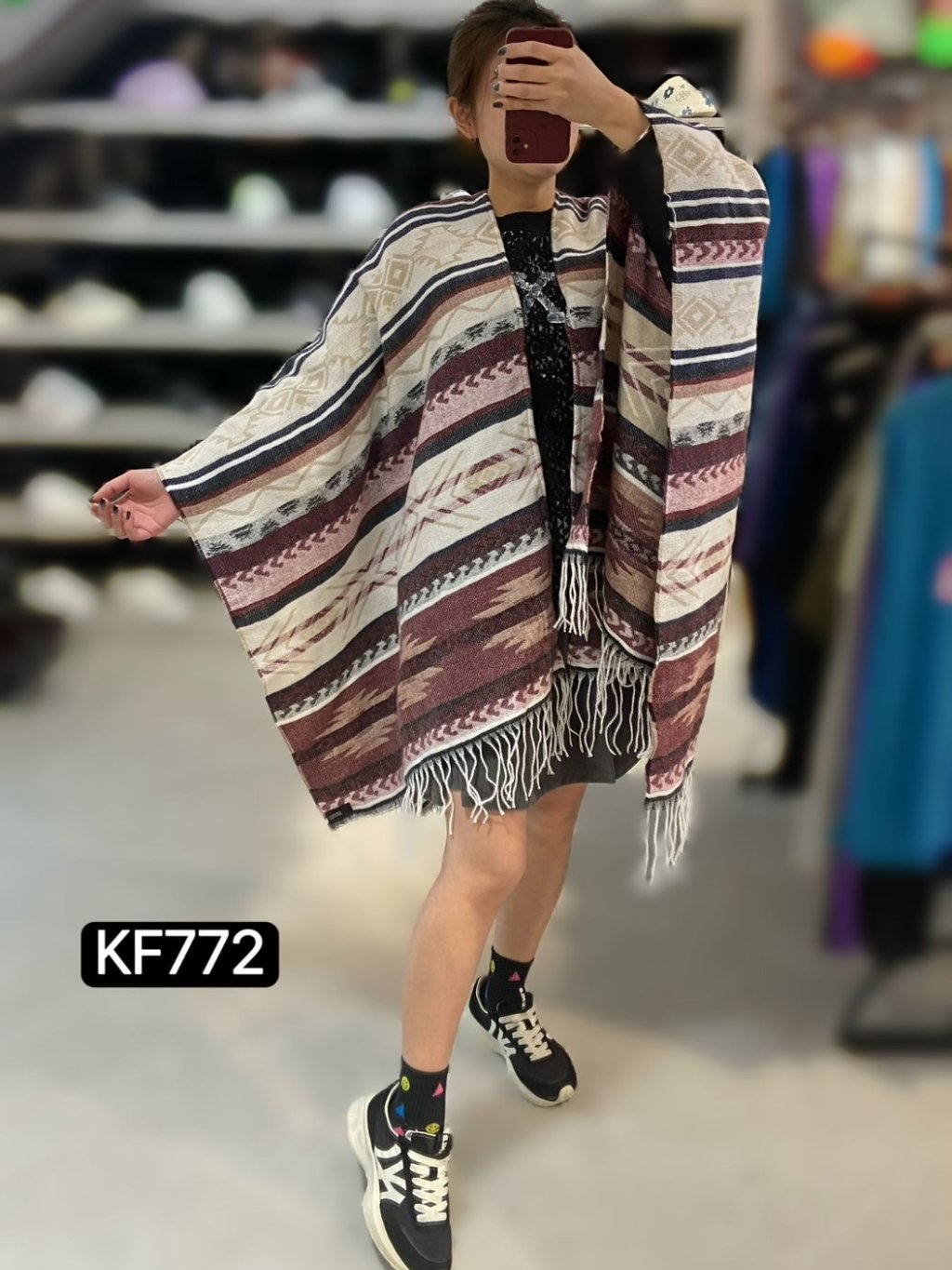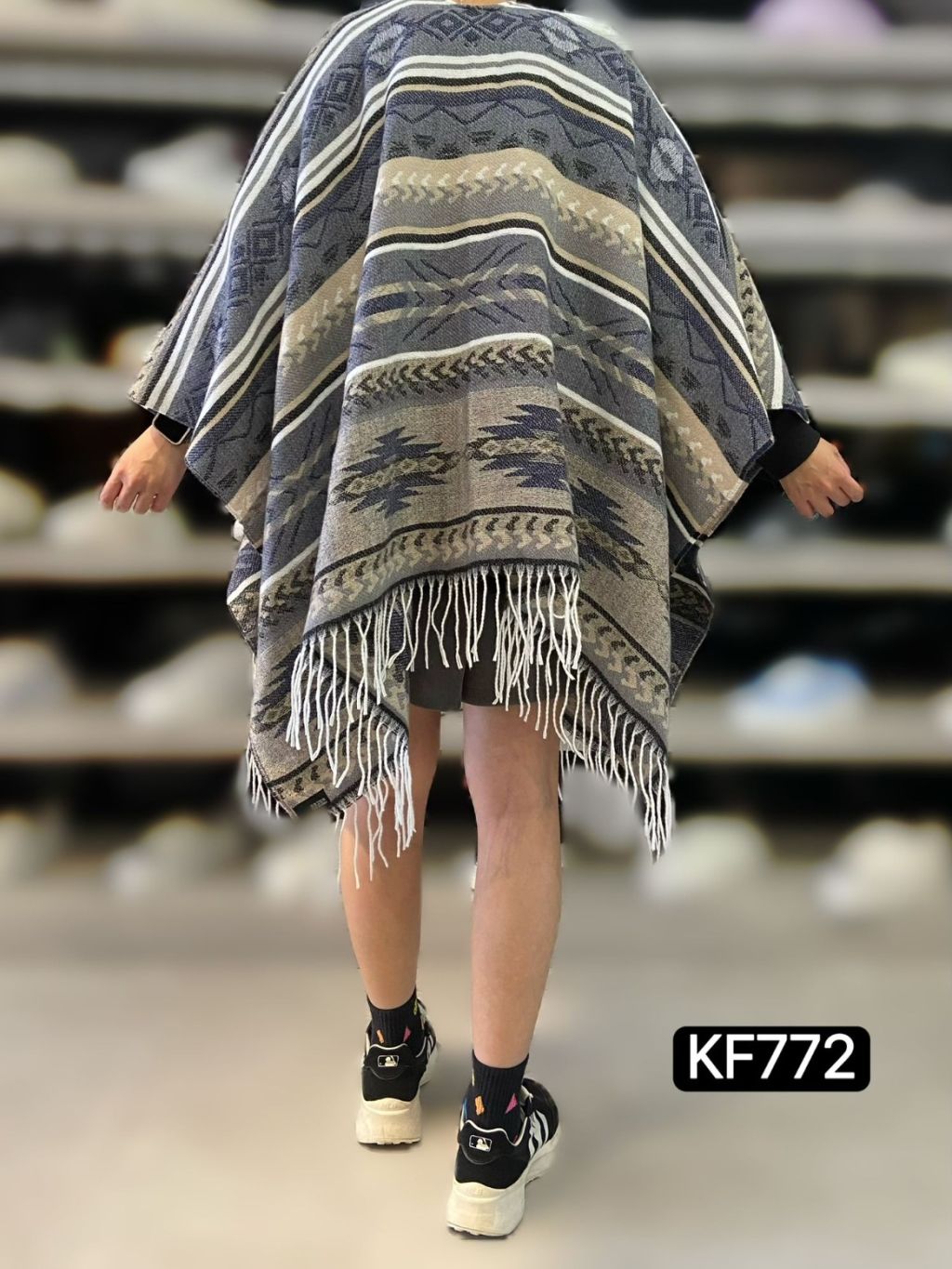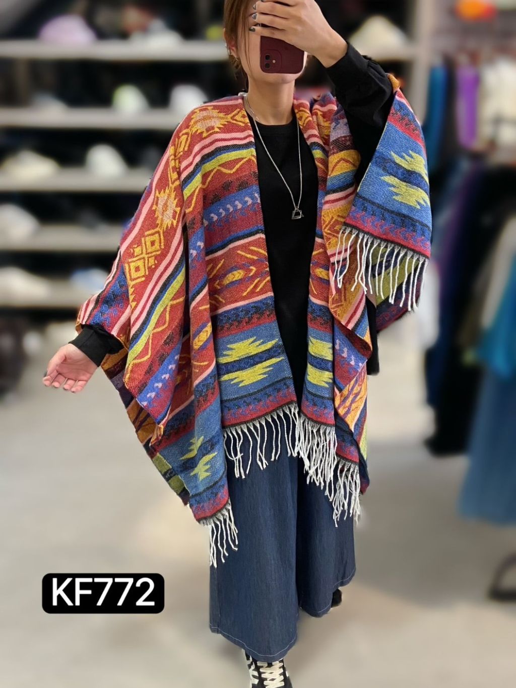 KF772 高質民族風撞色流蘇披肩 灰黑、紅藍、紫黃、杏紅 $149