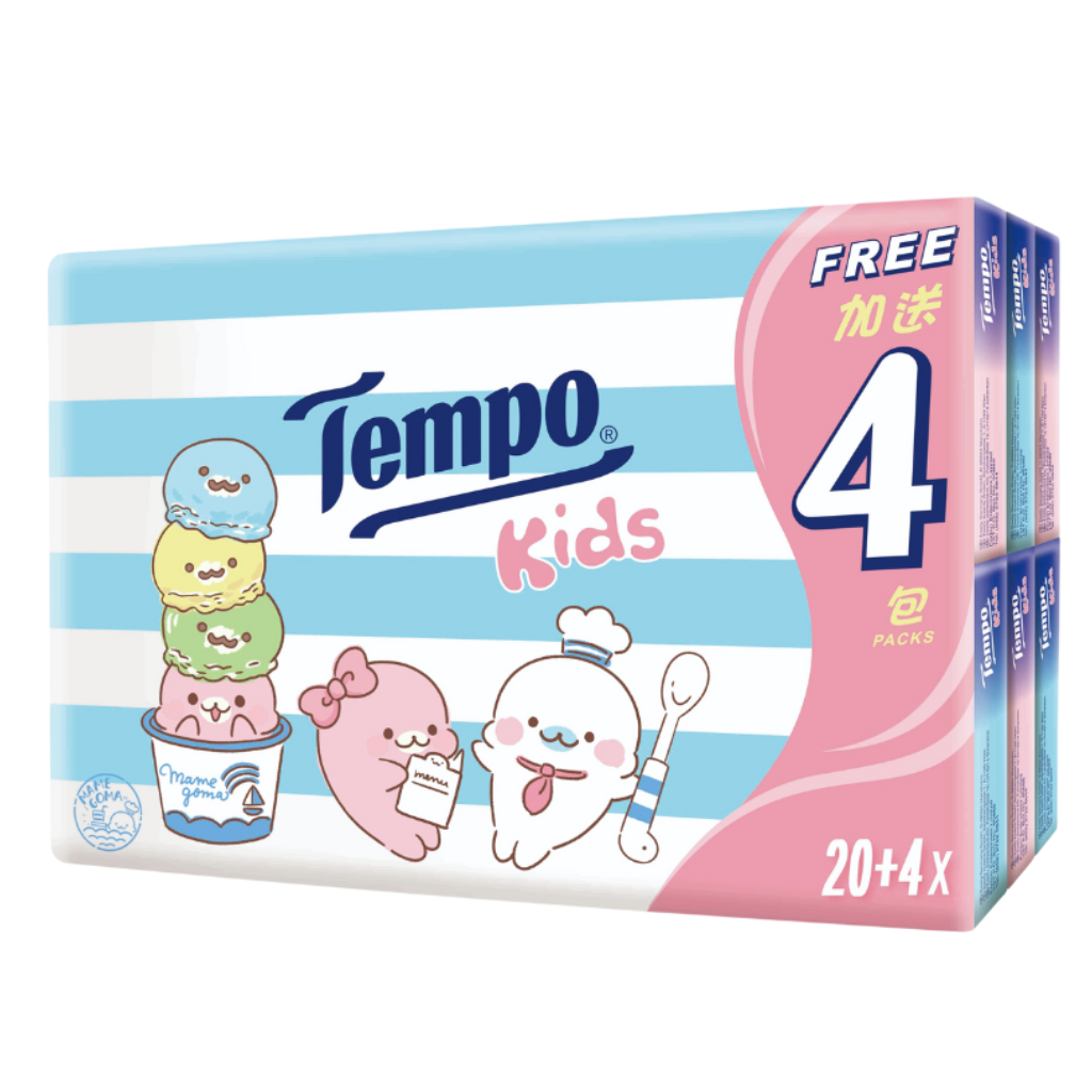 No.1207 Tempo兒童版紙迷你手巾20x20+4包x7片 (天然無香味) (total 24包) $35@1, 4件以上$29@1