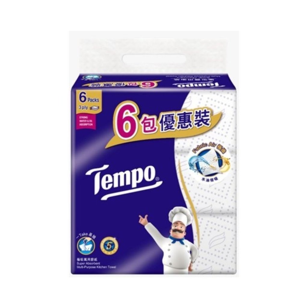 No.1210 Tempo極吸萬用抽取式廚纸(6包裝) $48@1, 買兩抽或以上$41@1, 買2送三層印花衛生卷紙2卷