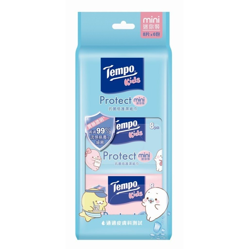 No.1212 Tempo兒童版抗菌倍護濕紙巾迷你6x8片裝 $34@1, 6袋以上$31@1, 買6袋送Tempo x Plastic Thing 新年限量版茶具套裝