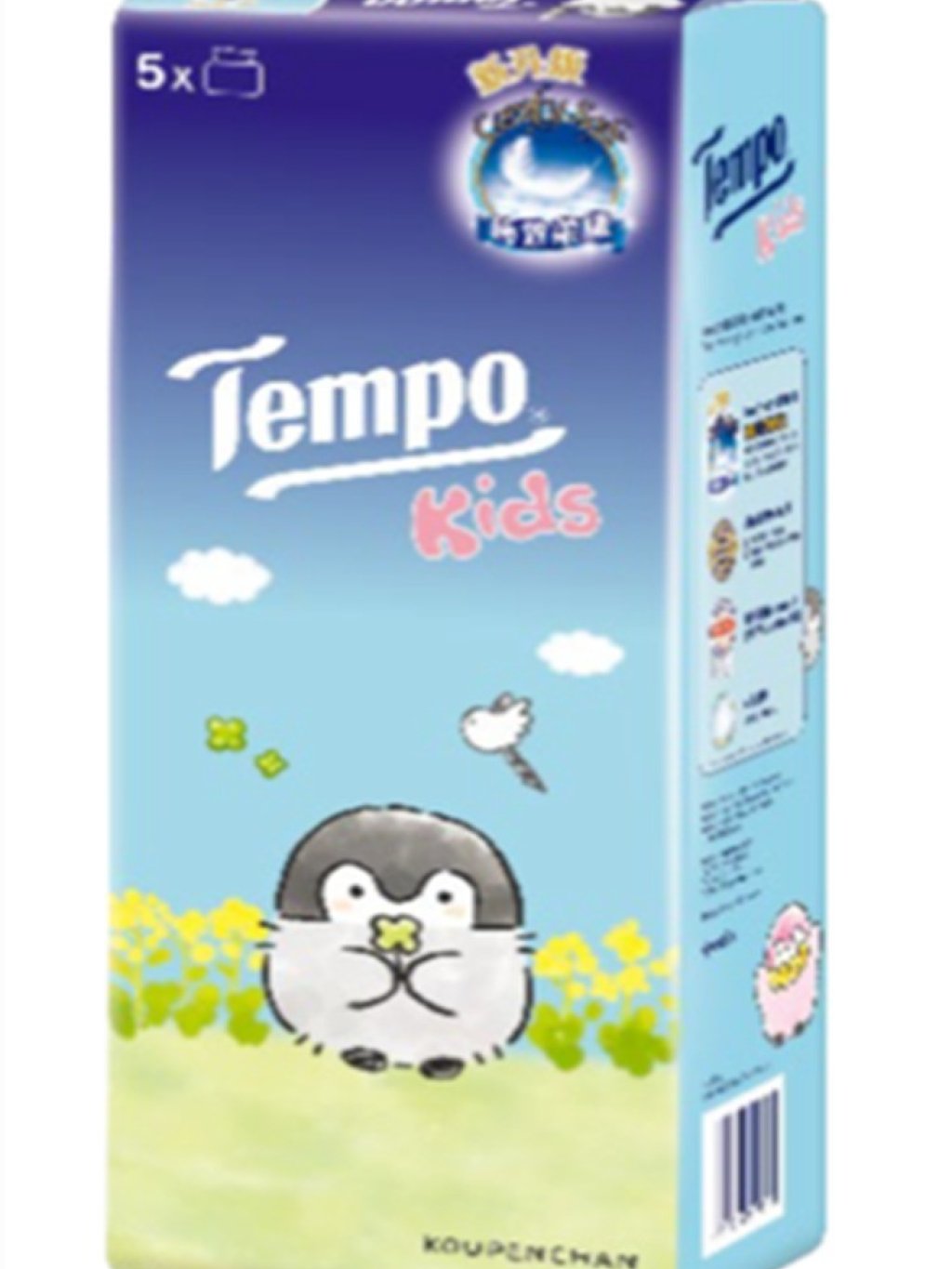 No.1216 Tempo兒童版天然無香抽取式紙巾5包裝(企鵝特別版) $32@1, 買5件送Tempo x Miffy 限量版縮骨遮(送完即止)