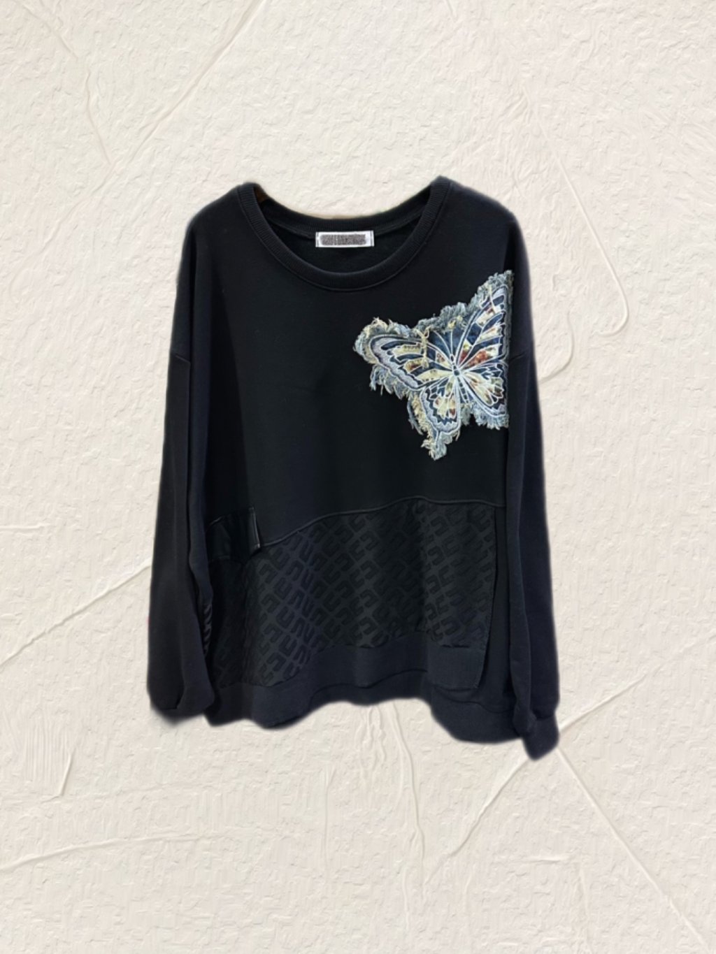 KF785 棉料牛仔蝴蝶下暗紋TOP 長27寸、闊52寸 $149