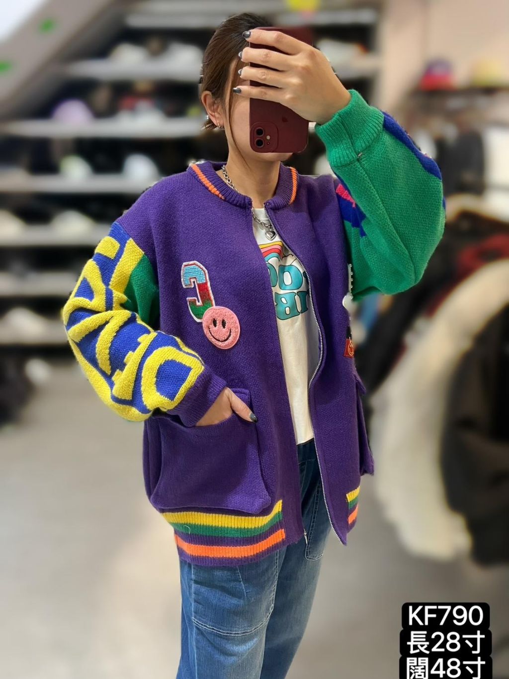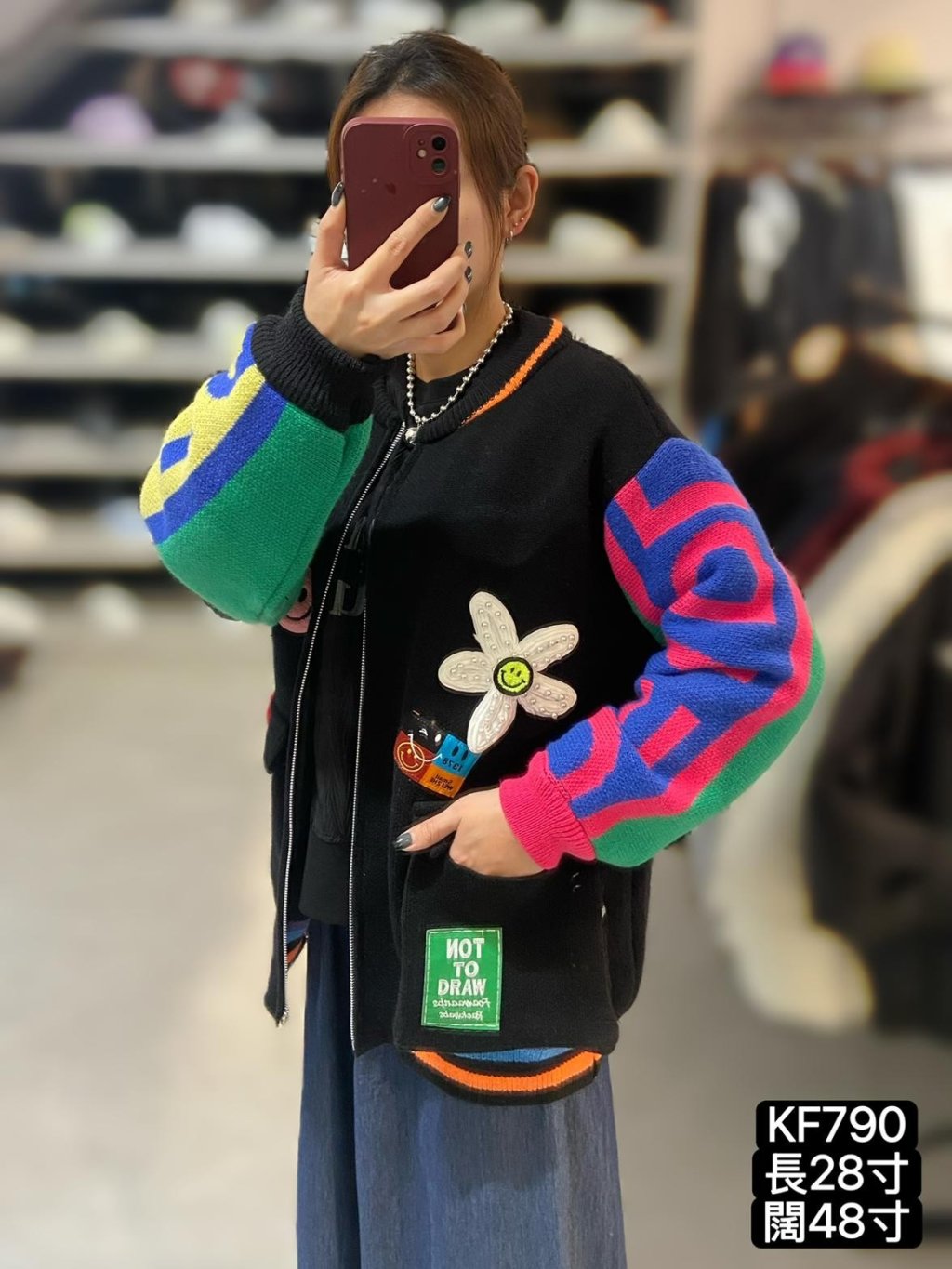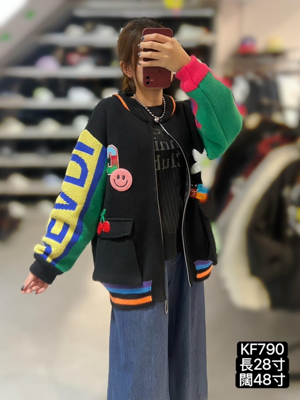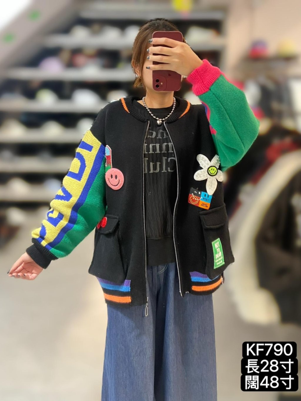 KF790 冷料撞色文字立體袋外套 長28寸、闊48寸 $229