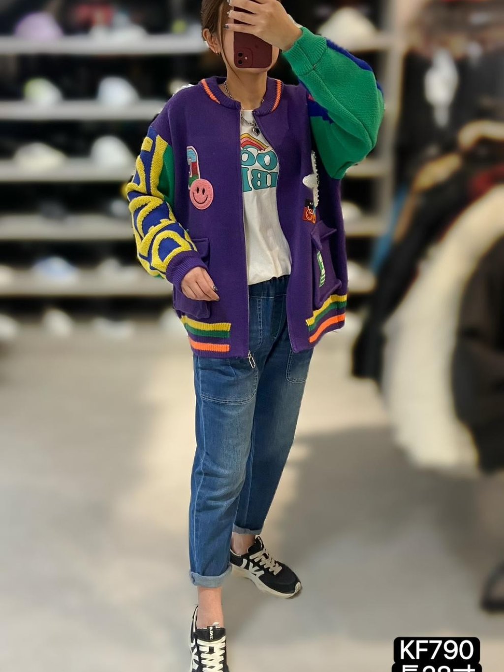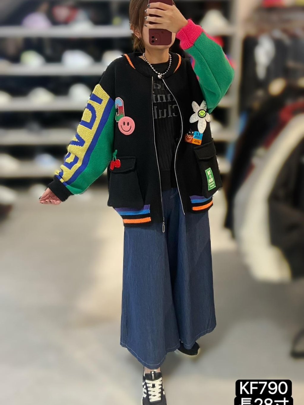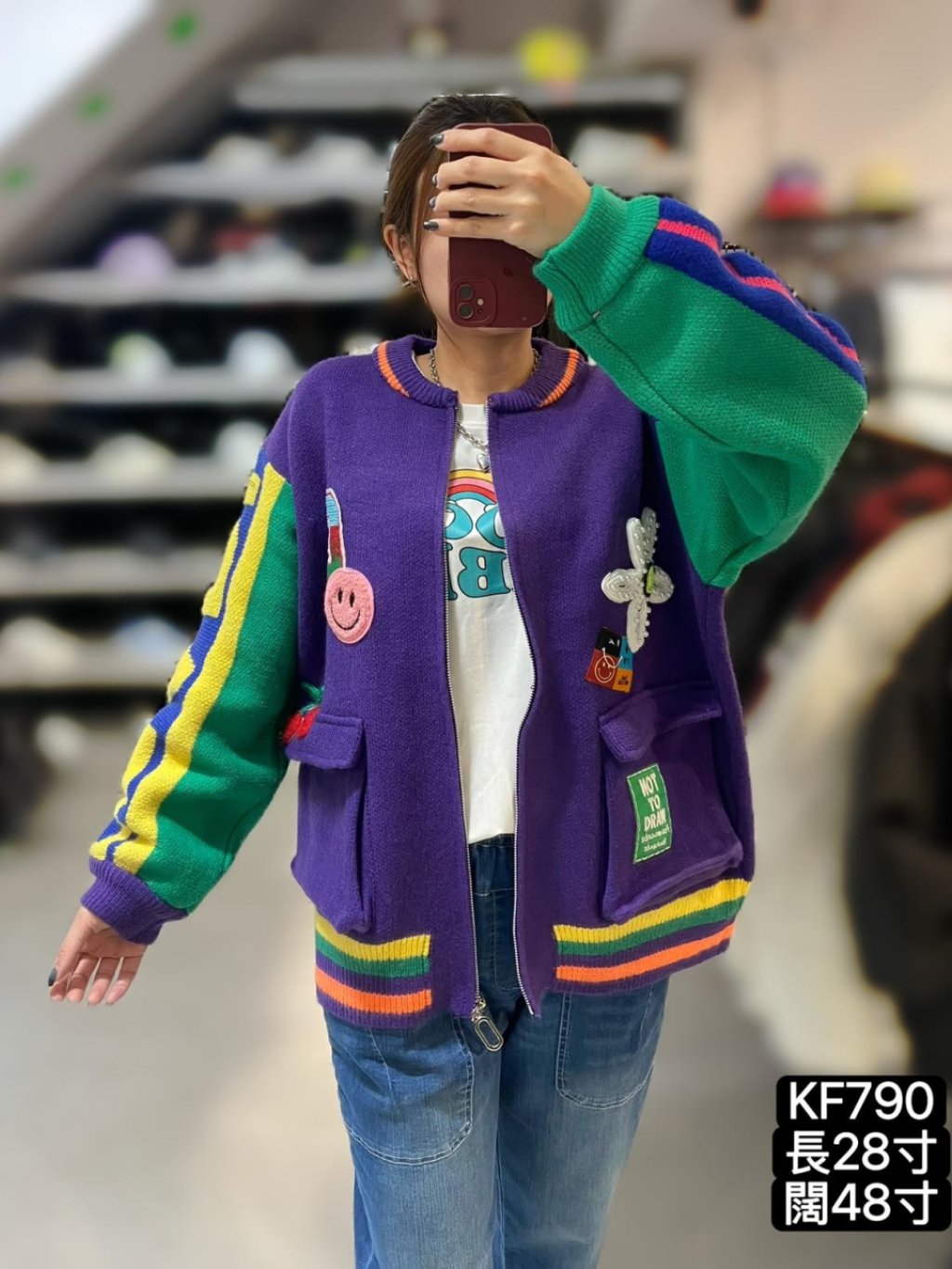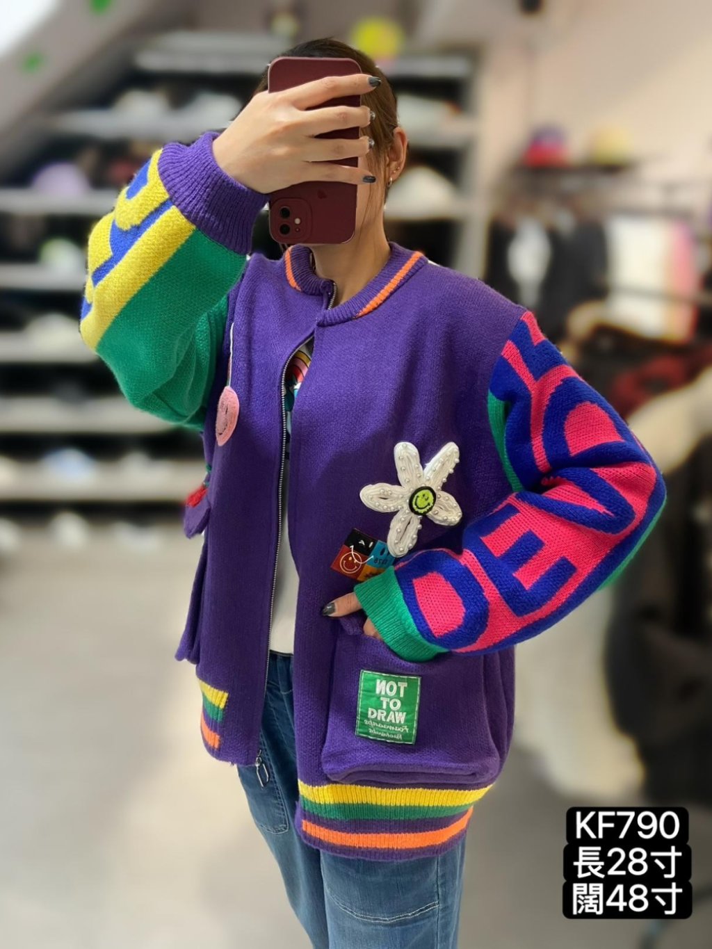KF790 冷料撞色文字立體袋外套 長28寸、闊48寸 $229