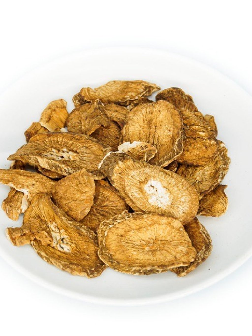 採用優質牛蒡根(又名東洋參),經低溫烘乾製成,色澤金黃、香氣濃郁。