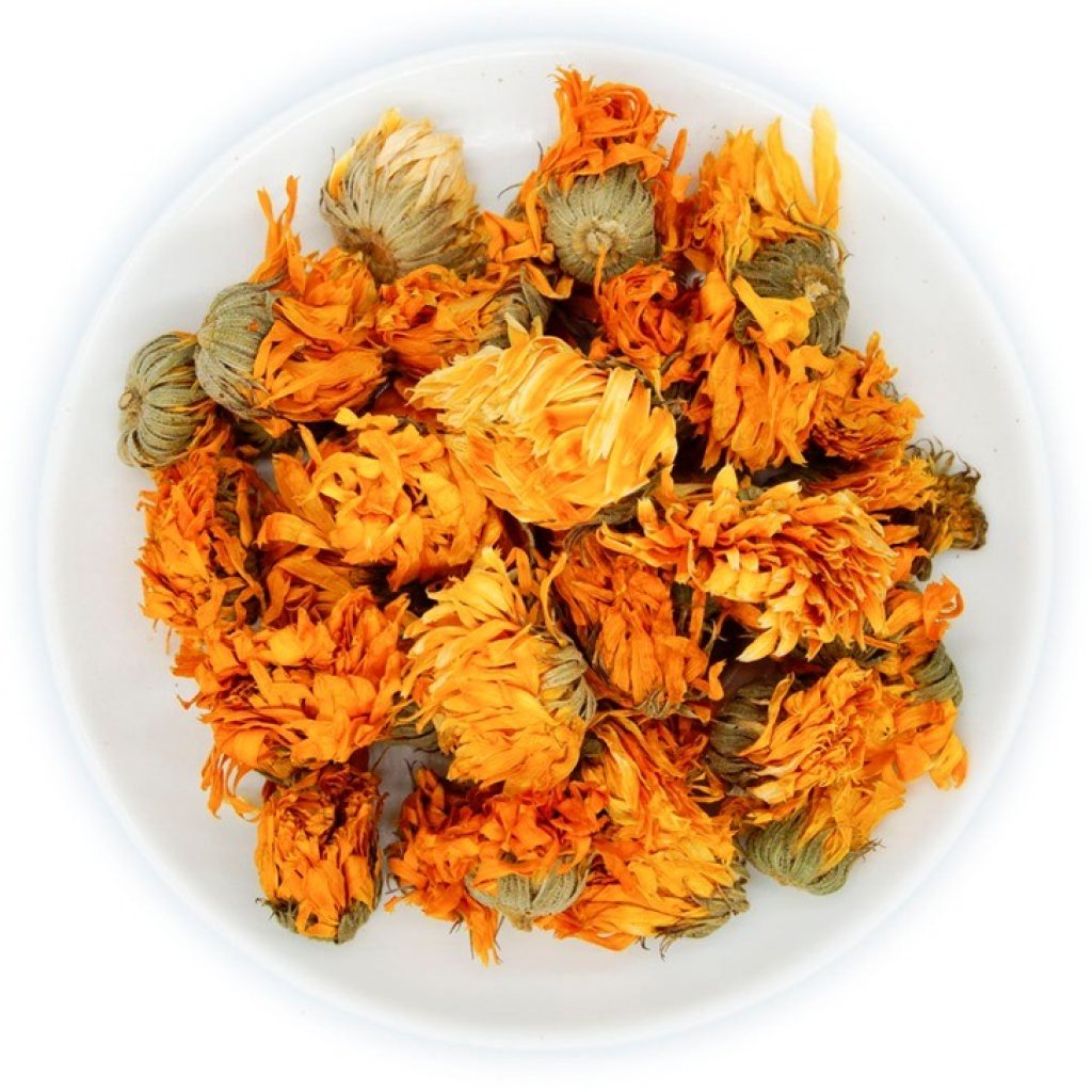 金盞花(Calendula officinalis):富含β-胡蘿蔔素、黃酮類與多酚,具有明目護眼、潤膚養顏、消炎解熱的功效。