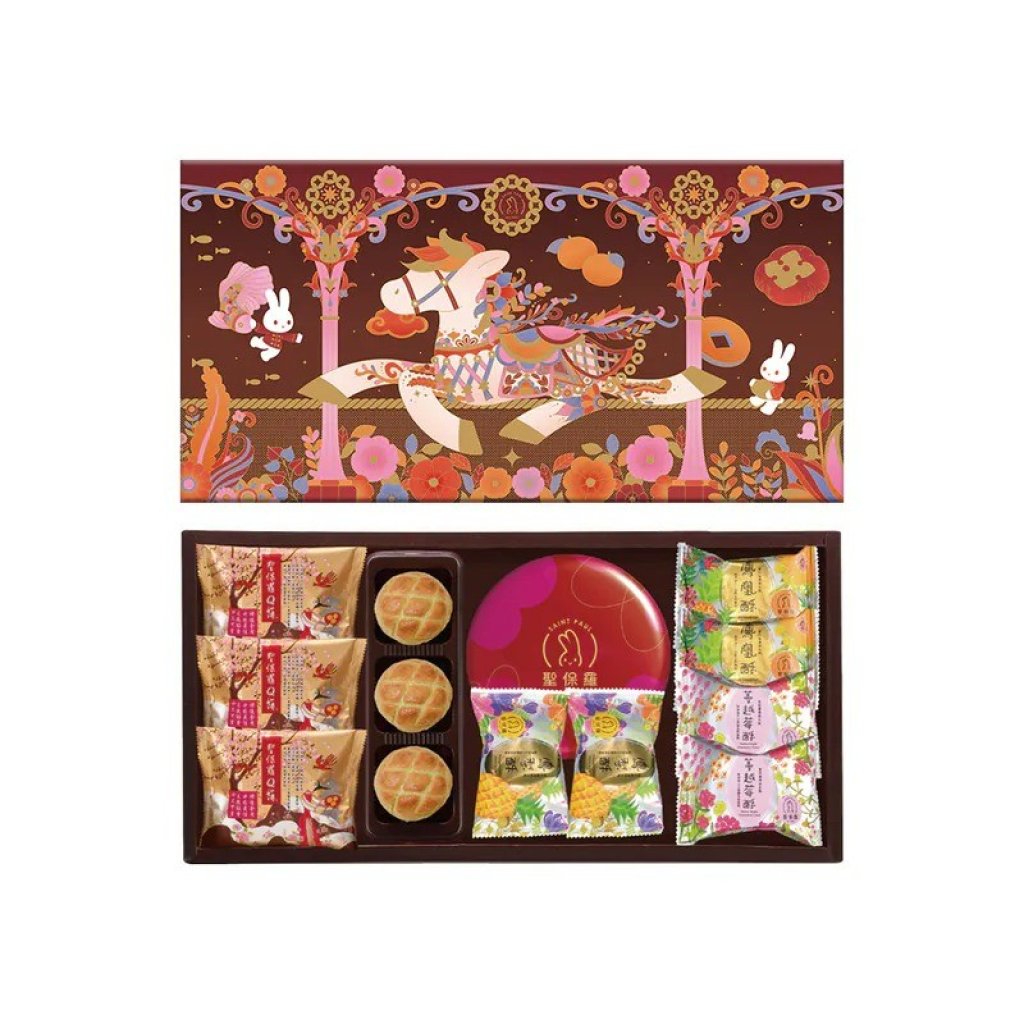 Q餅x3、菠蘿蛋黄酥X3、麗貝卡牛軋糖X1、鳳凰酥x2、鳳梨酥x2、蔓越莓酥X2