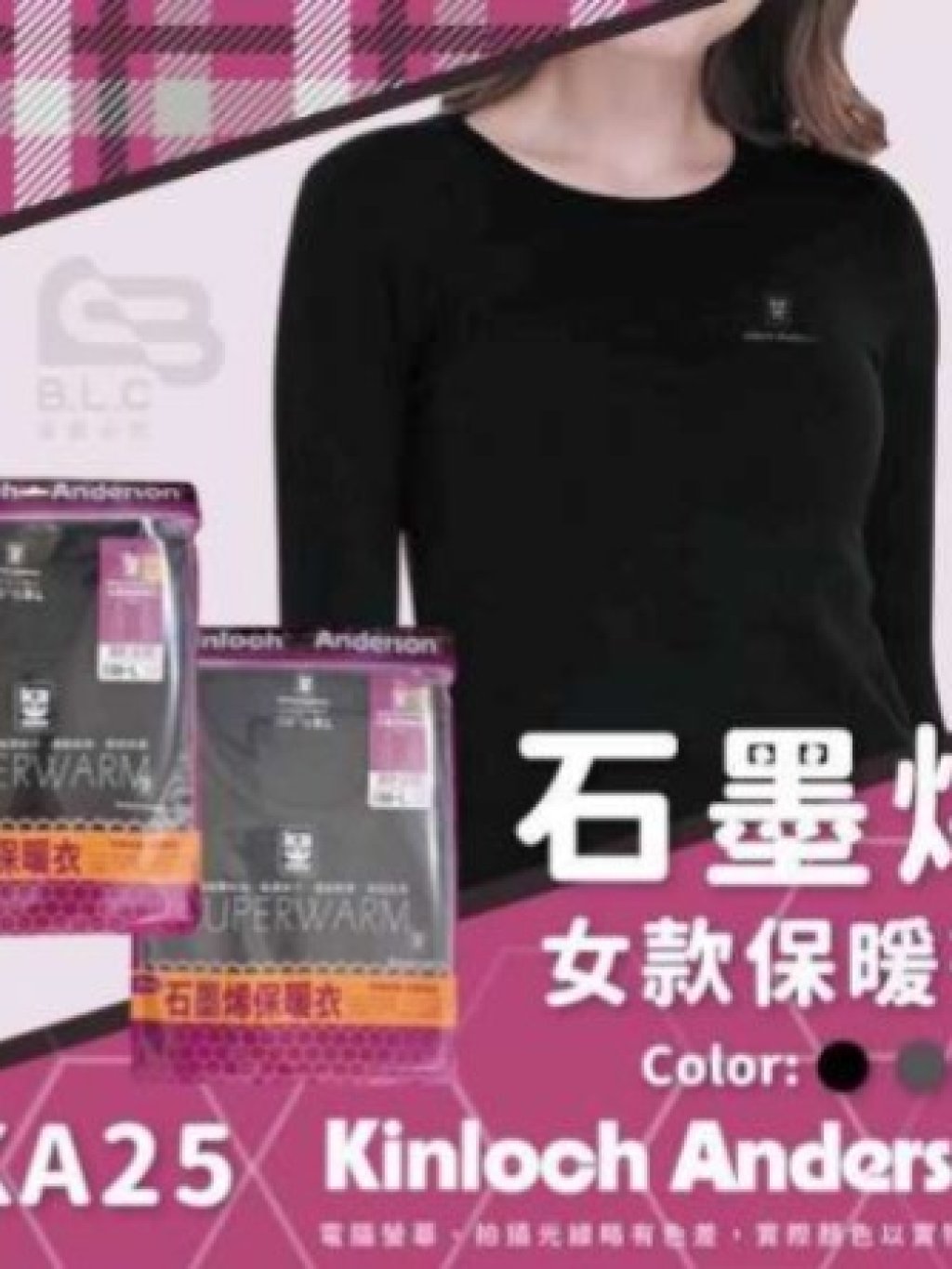 NO.3327 金安德森石墨烯女款保暖衣(圓領) 麻灰/黑色 M-L、 L-XL $109@1件,買2件或以上可減-$10