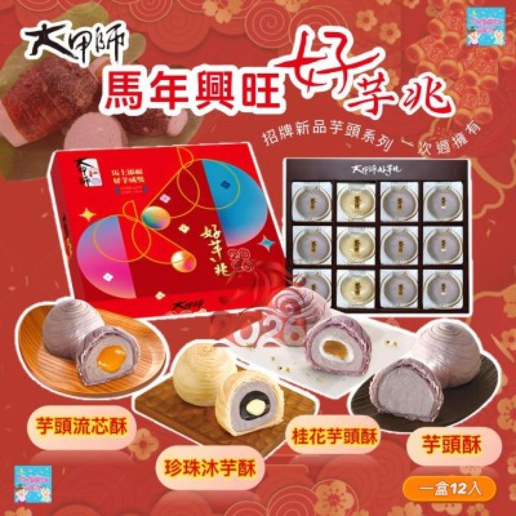 主頁 FD1851 大甲師 馬年興旺好芋兆 芋頭流芯酥3入、珍珠沐芋酥3入 桂花芋頭酥3入、芋頭酥3入 $159@1盒;3盒或以上每盒-$9